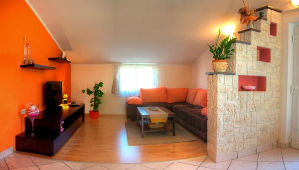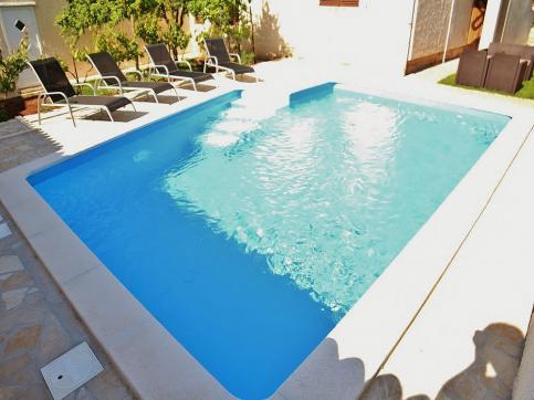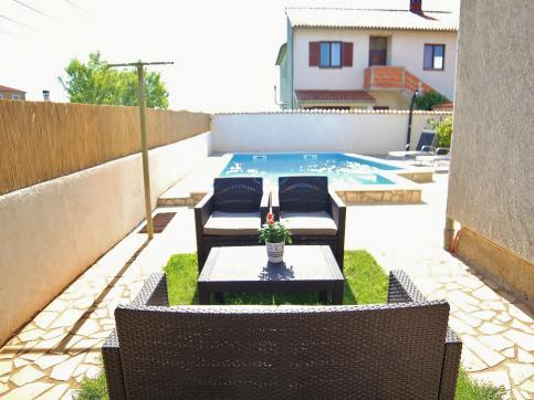 Beautiful, newly furnished and spacious apartment with a living room, two bedrooms and one bathroom, with swimming pool, located just a few minutes from the beautiful town of Pula. It is air conditioned and has a garden and a terrace suitable for evening with a barbecue. The pool is located behind the house, where there are sun loungers, outdoor shower. The pool is surrounded by lawn, garden furniture and outdoor grill. In front of the house is a playground for children with swings. Guests also have its own parking lot.