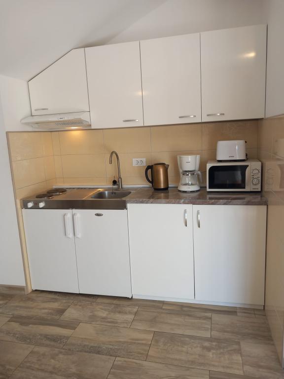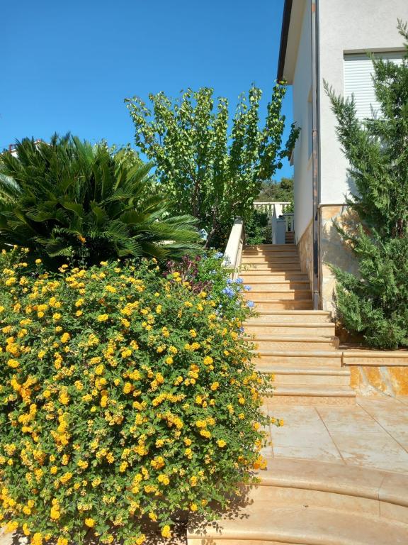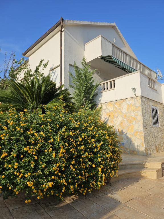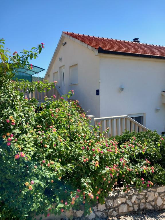 Fully equipped and modern apartments in a quiet part of Poljica with a beautiful view of the sea and the Marina bay. At your disposal a large apartment for 2-8 people with Velka balcony overlooking directly to the sea from the south side and a large terrace on the north side, which also has a sea view and is equipped with garden furniture, sun loungers and parasols, ideal for lunch and afternoon rest. The terrace is connected directly to the parking lot which is free and a small basketball court. The apartment has three bedrooms with a double-double beds, of which one room has an extra bathroom. Large spacious hallway, bathroom, kitchen and living room. In the garden there is a fireplace -gril that you can use at any time. Small apartment for 2 people has an extra entrance and private terrace surrounded by flowers and greenery, offering a breathtaking view of the sea ... Both apartments are situated in a quiet place so that you can enjoy the peace and quiet ...