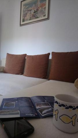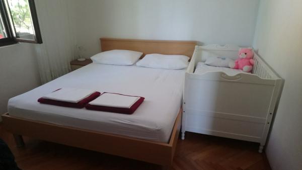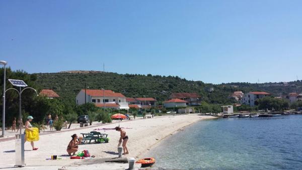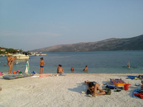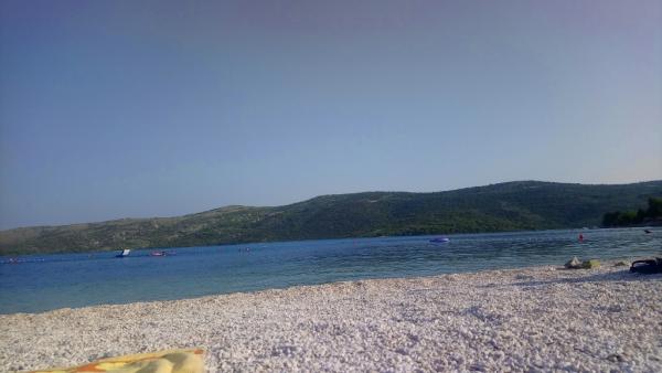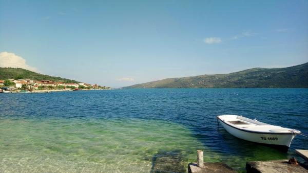 The house is located in a lovely bay Poljica, Central Dalmatia, in Split region, only 10km away from beautiful Trogir. It is ideal for two families with/without kids. Located 80m in the uphill it offers you a sea view and a peaceful place to rest. Pebble beach is only 150m away. There are 3 bedrooms in the house, each with ceiling fan. 1 person can also sleep in the living room. (1 baby cot also available on request). The kitchen is fully equipped (cooler, freezer, oven, dishes, cutlery, microwave oven, kettle). Except the shower in the bathroom, there is an extra shower in front of the house, as well as a big terrace with parking lot for 2 cars and a grill. In Poljica, you can find ATM, market (70m away) and small cafes, all located on the shore. However, if you need supermarket, fish market, post office or restaurants, you will find it in nearby Marina (2km away). Owners live in Split (35km) and are at disposal to make your holidays more comfortable. Welcome!