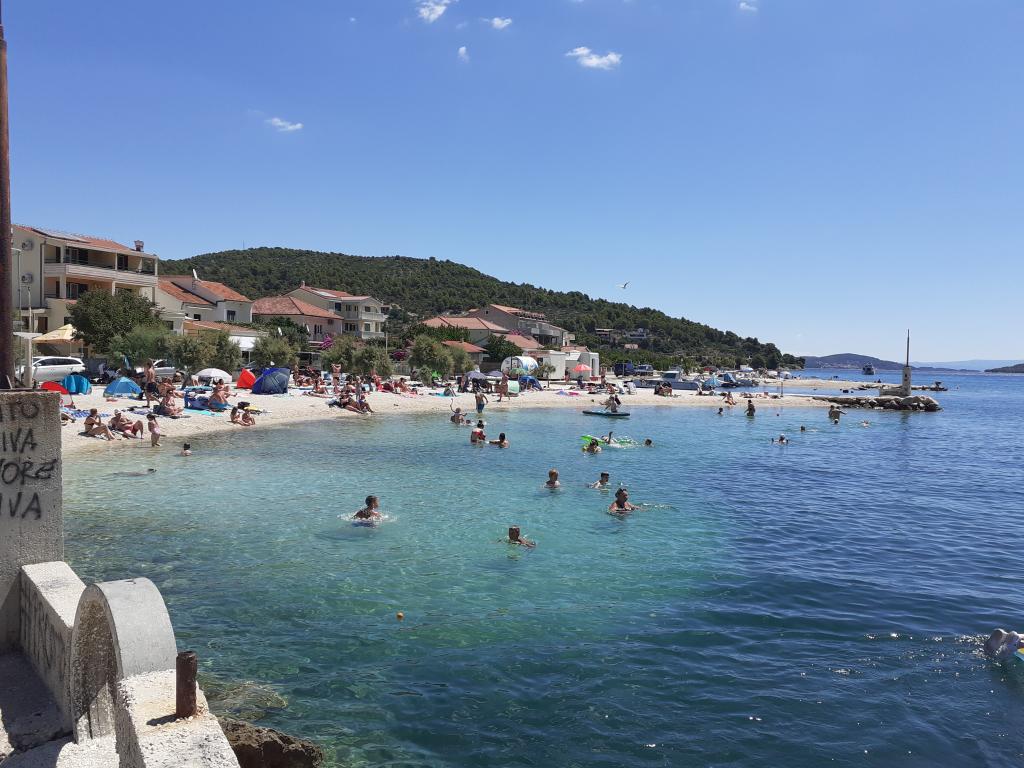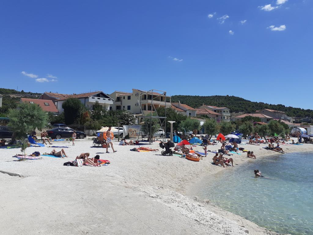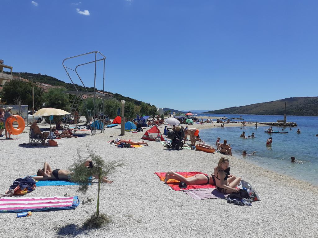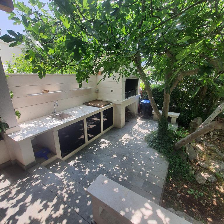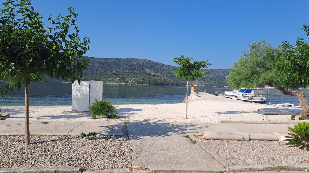 Excellent location by the sea with a suitable beach for children and adults. An excellent apartment in the shade, with a beautiful terrace, a modern, fully equipped kitchen and a bathroom with a spacious shower cabin. An excellent owner who also provided tasty surprises (slices, drinks, baked fish). I definitely recommend it.