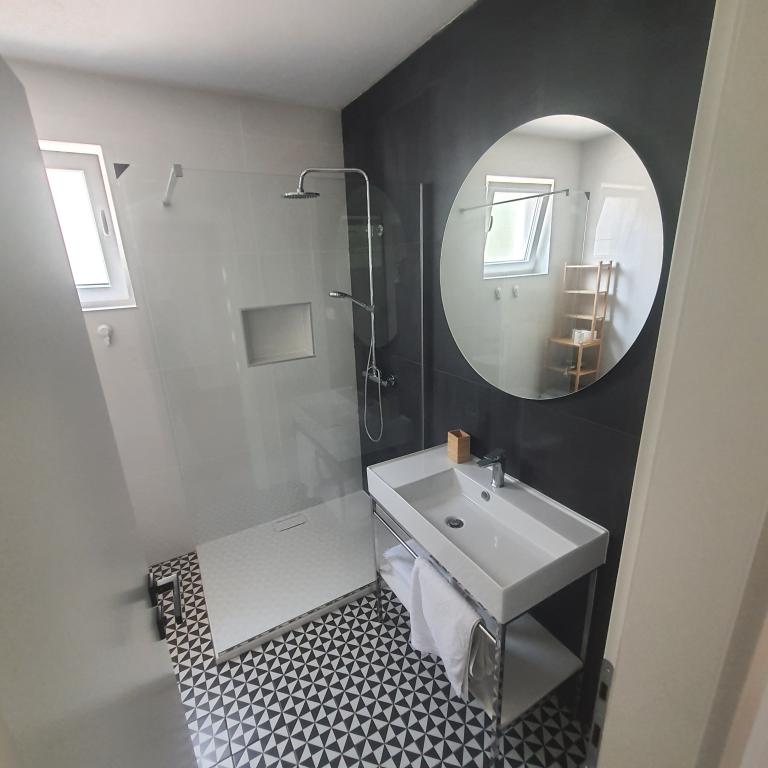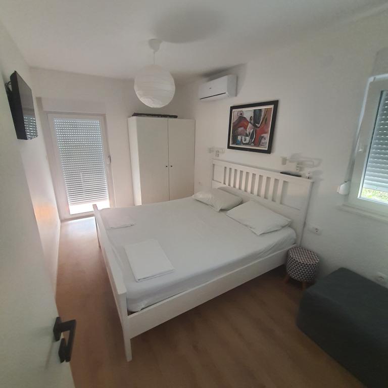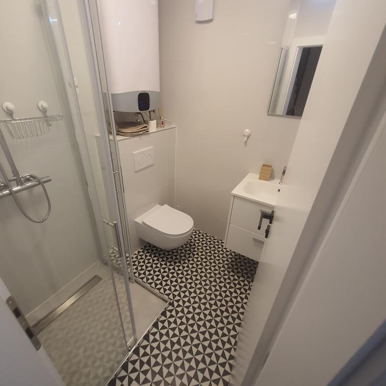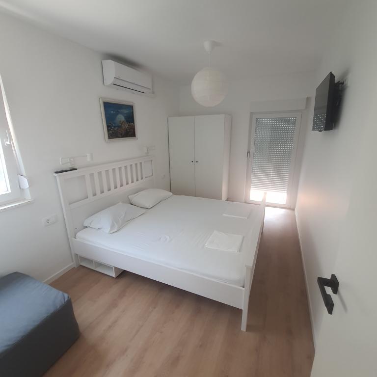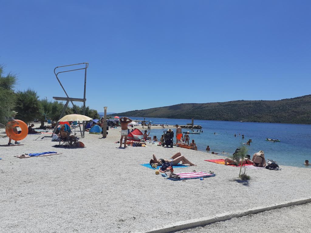 Excellent location by the sea with a suitable beach for children and adults. An excellent apartment in the shade, with a beautiful terrace, a modern, fully equipped kitchen and a bathroom with a spacious shower cabin. An excellent owner who also provided tasty surprises (slices, drinks, baked fish). I definitely recommend it.