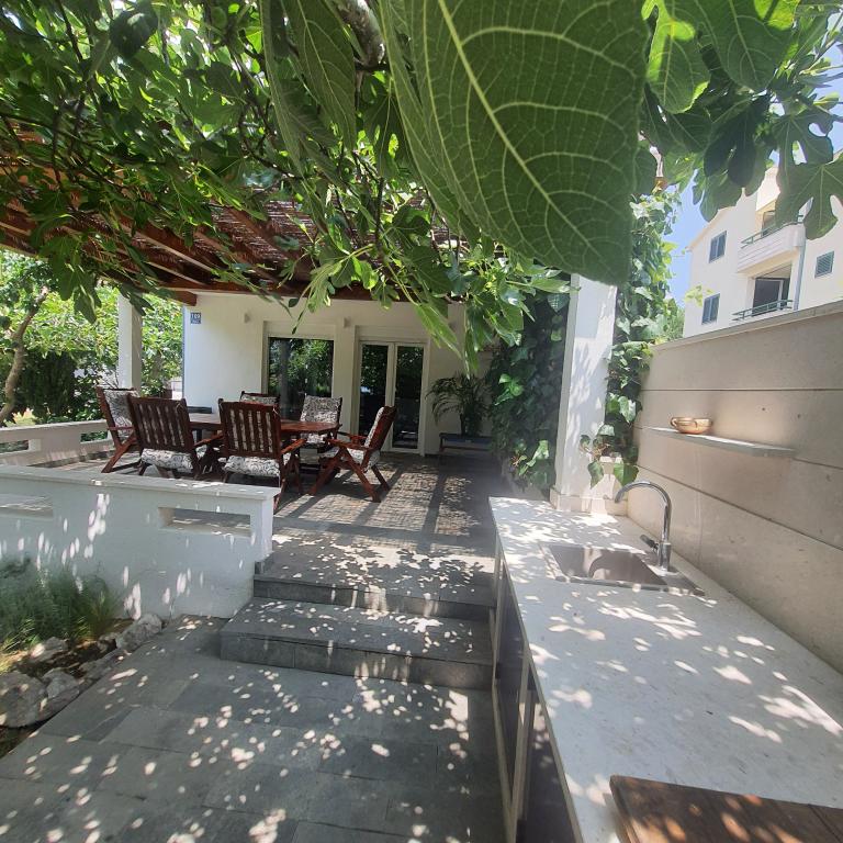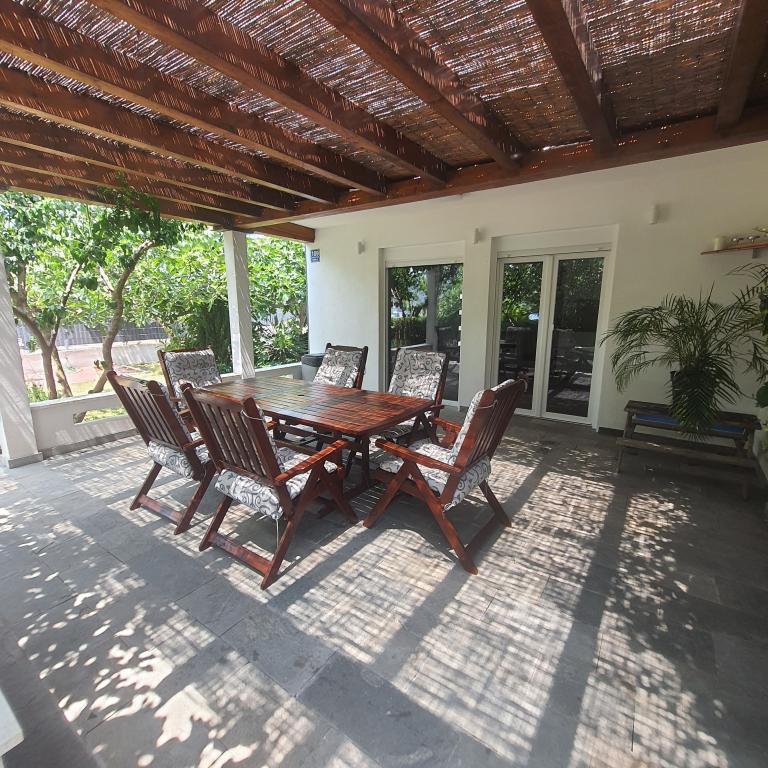 The accommodation and location of the apartment are excellent! Everything we needed for the first hand was waiting for us in the accommodation, which made it a lot easier because we came with small children. We were welcomed by a very nice owner. Location right on the beach, quiet, no traffic, ideal for children. There is enough shade in the yard, an outdoor kitchen and everything you need to prepare food. The apartment is nicely decorated, everything is new and clean. We have absolutely no complaints. One day we will come back again. Rating 10/10!