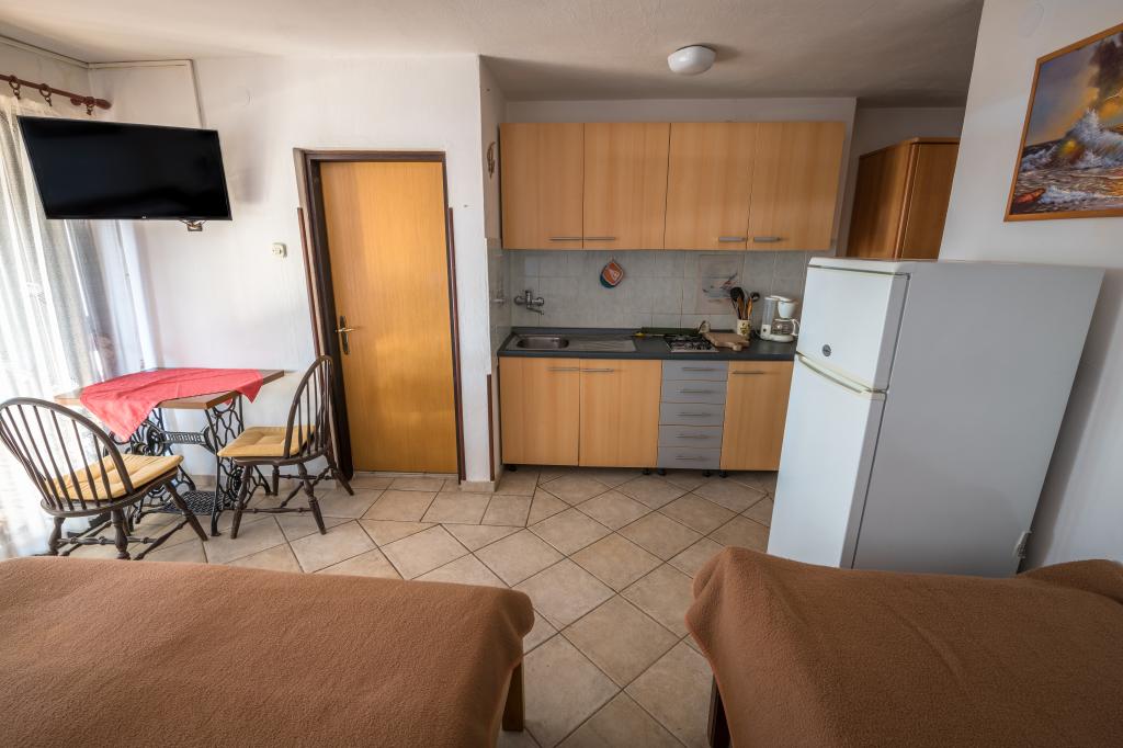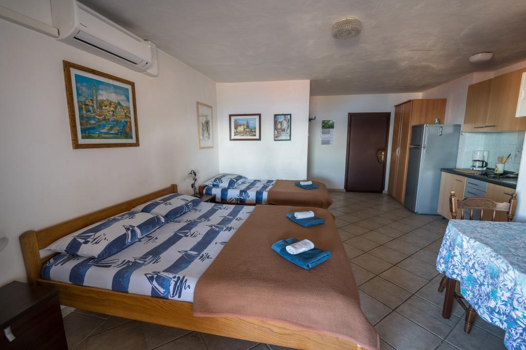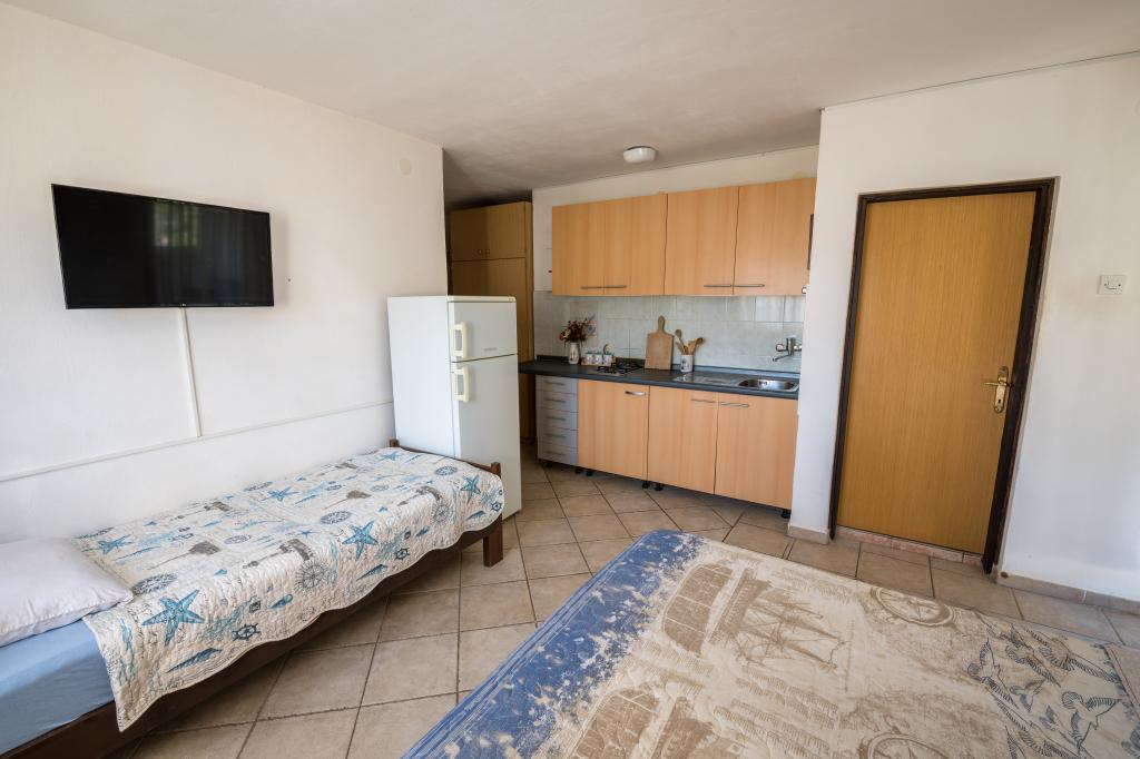 Residential tax is included in price.Our guests Villa Goga offers free fenced parking in front of the villa, free use of the Goga Club Grill where guests can use a gas or wood grill and choose one of the bakeries where they can bake meat or homemade bread according to old recipes. Goga Club Grill is covered and closed, so it offers guests the opportunity to socialize even in rainy weather. Each villa apartment has a fully equipped kitchen, furnished beds with bed linen and towels, a bathroom with a shower cabin, sink and toilet. Each apartment has its own terrace with a view of the sea or olive groves, depending on the location of the apartment. Also, all apartments are villas. covered by wireless internet, which is completely free for guests. NEW!! All guests of the house have access to the newly built charging station for electric cars located in the yard of the house. The charging station has a Type 2 connection with a charging speed of 11 KW. Usage is charged additionally.