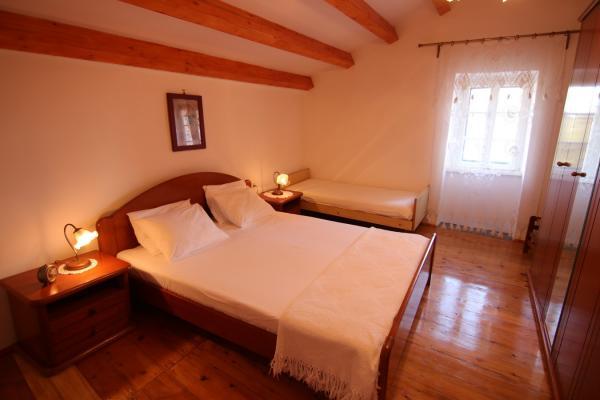 Holiday Apartment Krista is located in a small village near the sea of Miholašćica, on the island of Cres. It is 3 km away from the first largest town in Martinšćica where there is a shop, a doctor and an ATM. It is a country house with a garden with barbecue and olive grove and is only 100 m away from the beautiful beach. Near the house there is a restaurant and a shop is only a 10-minute walk away. The house consists of one spacious kitchen, two bathrooms, one bedroom with double bed and one bedroom with double bed and extra bed, and a living room with a sofa bed where two people can sleep. It is a comfortable accommodation for 4-6 people. Guests have free Wi-Fi. Close to the house is a secured parking place without charge. Pets are not allowed. Arrival is possible every day.