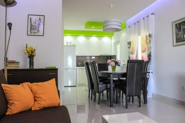 Residential tax is included in price.We had the pleasure of spending our vacation at the Green Apartment, and it was a wonderful experience in every way! The room was huge and incredibly comfortable – everything was tastefully decorated, clean, and functional, making us feel right at home. The owners were very friendly and unobtrusive, yet incredibly helpful – always ready to offer advice or help with small matters, which made our stay even more enjoyable. Mrs. Maria is a true treasure – her warm personality and genuine hospitality made us feel exceptionally welcome. I recommend this apartment to anyone seeking relaxation in a beautiful and peaceful setting!