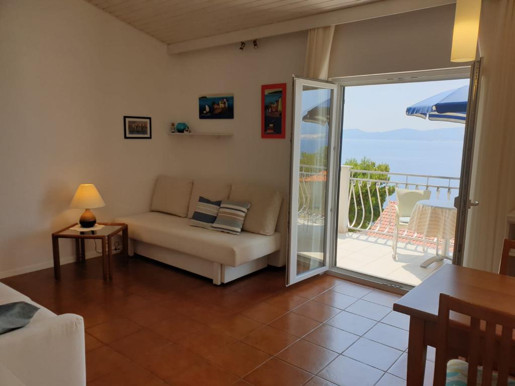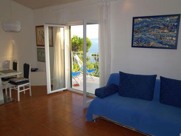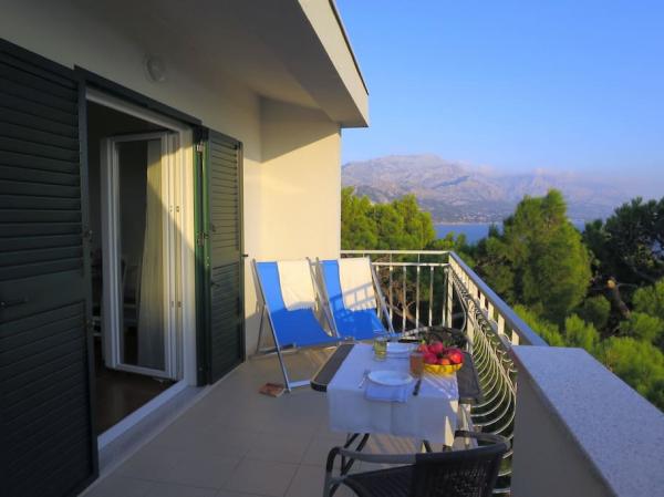 Kuzmanić house is situated in a tranquil setting overlooking the sea and the mountain slope. It is only 150 meters from the sandy beaches and crystal clear waters - ideal place for rest and relaxation! The house was built in 1971, completely renovated 2013th Accommodation is offered in three modern and well-equipped apartments. 2 +2 Apartments are located on the 2nd floor with a separate entrance. Both features separate kitchen, large living room with terrace and sea view. Each bedroom has its own balcony small and intimate. Apartment A 4 is located on the 1st floor. It has a separate entrance, two small balconies overlooking the sea and a large terrace at the rear of the house with a grill, a solar shower and full of blooming flowers. Lovers of nightlife will find a good time in nearby Makarska, and sports enthusiasts will easily find in Omis activity for themselves: rafting, paragliding, zip-line ... After a challenging day spent in Marušćima will wait for a quiet holiday. Welcome!
