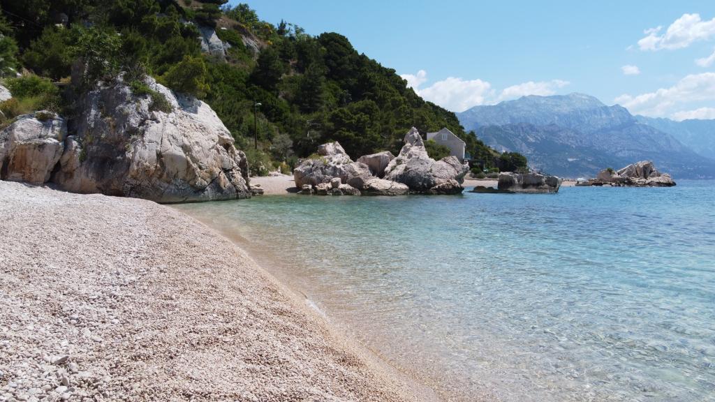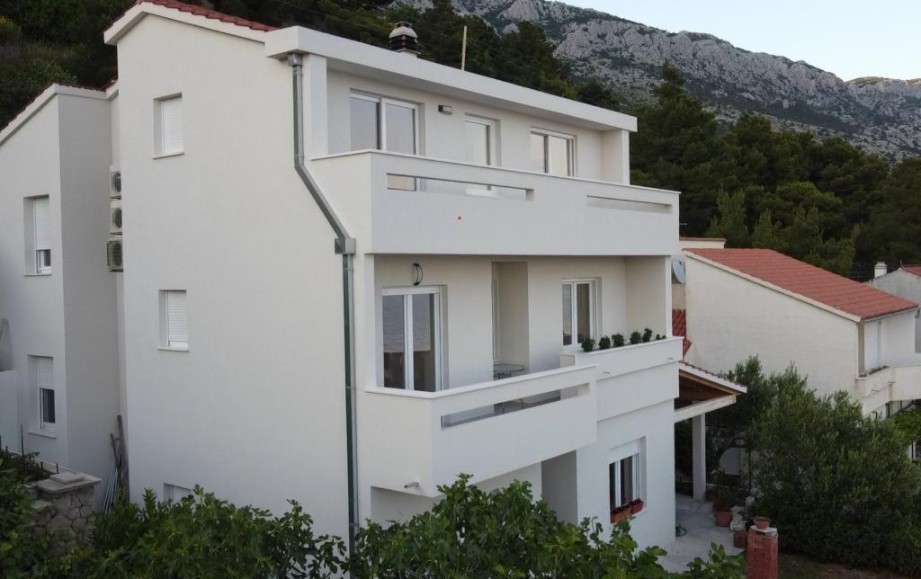 Apartments Nives are located in a small village Marusici on the Omis Riviera. The terrace of the apartment offers a beautiful view of the surrounding islands and the mountain Biokovo. Our house is located in a quiet and picturesque area, away from traffic noise, where you can enjoy a relaxing holiday and forget about stressful everyday life. The second row to the sea allows you an easily accessible beach, one of the most beautiful in Dalmatia, which is not overcrowded because there is no access to cars. There is a natural water source on the beach, and you can find sun protection in the natural shade. There is also a supermarket nearby, a 10-minute walk away, and a restaurant a few steps away. The house has three apartments, those on the first and second floor are rented. The apartments are equipped with LCD and air conditioning, bathroom, fully equipped kitchen, terrace, barbecue and private parking by the house. The hosts live on the ground floor and can make your vacation even better with good tips related to the region, excursions and places worth visiting.