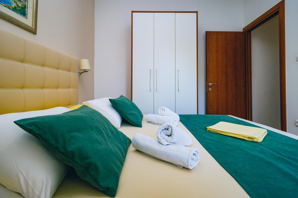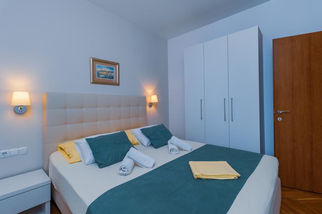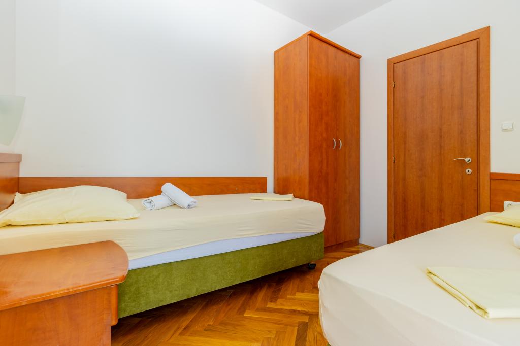 Villa Ruzmarina with an infinity pool is located right above the beach, which is reached by private stairs and captivates with its sea view. Every apartment has a beautiful view of the sea, even every room has a beautiful view. They have two types of apartments, one with two rooms and a living room and the other with one room and a living room. Each apartment has access to the swimming pool and fitness hall, as well as free parking. Also on the beach, the price includes two sunbeds reserved for each apartment and an umbrella.