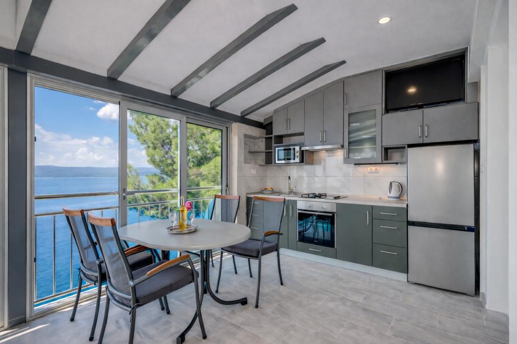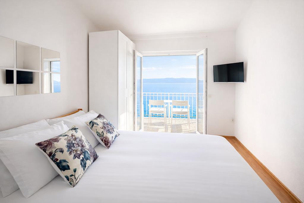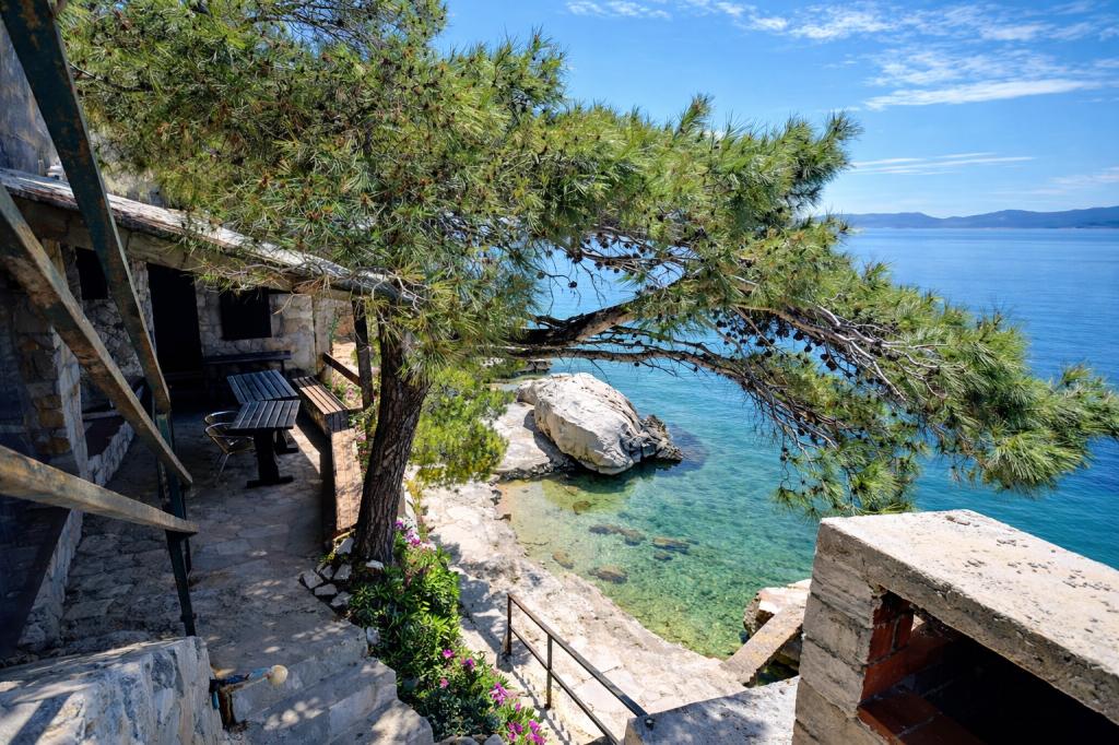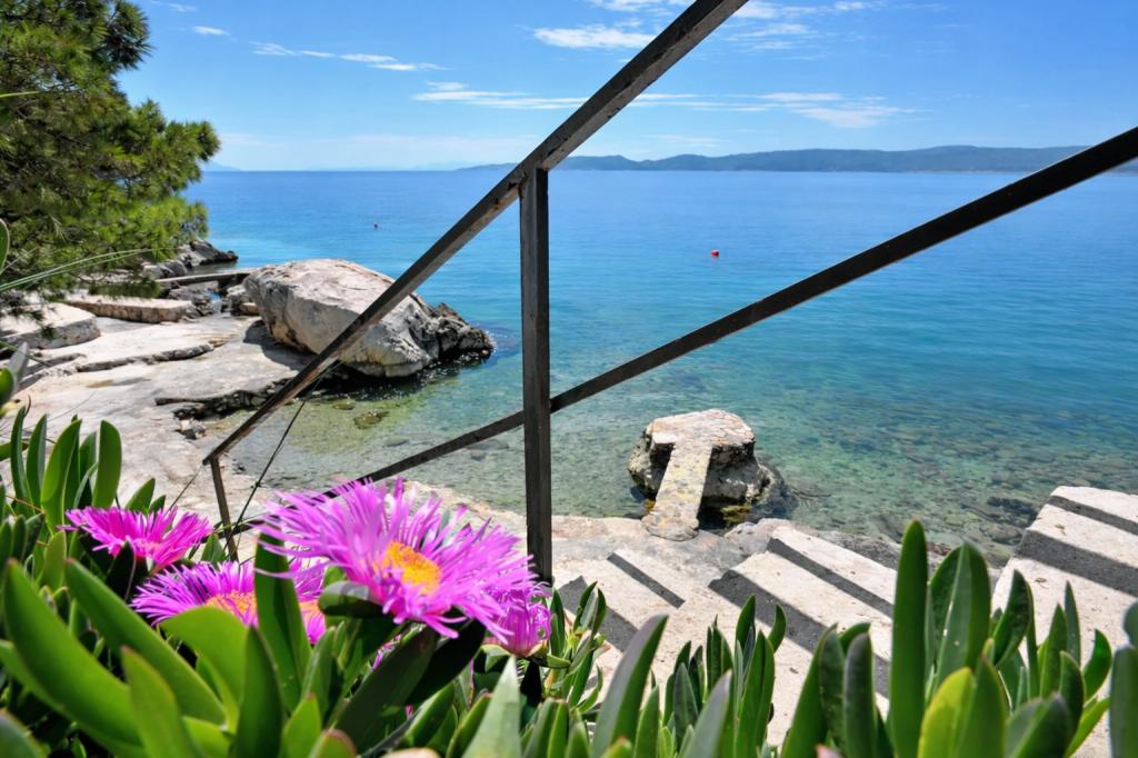 A family house with 3 apartments is located in the quiet village of Marušići, ideal for guests looking for relaxation, privacy and proximity to the sea. The property is located first row to the sea and is surrounded by greenery and offers a pleasant atmosphere away from the city crowds. The house is an excellent choice for couples, friends and families who want a peaceful vacation with crystal clear sea and untouched nature. Due to the stairs (approx. 200) leading to the beach, the property is not suitable for people with disabilities, babies and elderly or people with reduced mobility. Private parking is available to guests, ensuring a carefree arrival and stay.