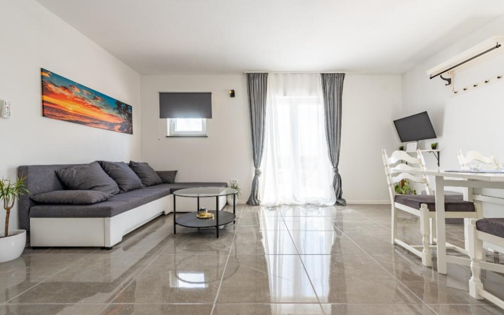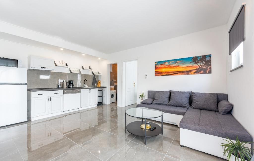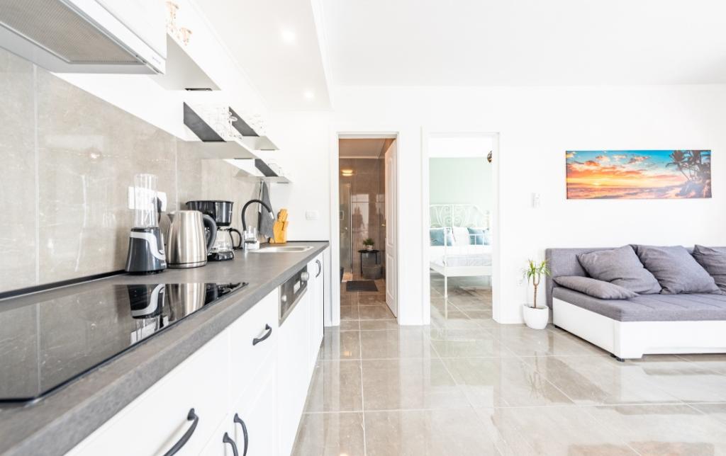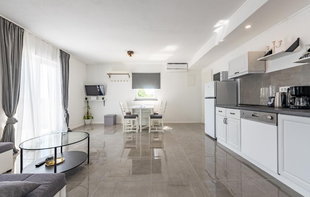 Modern and fully equipped apartments in a quiet part of Maslenica. The facility is located in the center, 250m walk to the shops, 900m walk from the main beach. On the way to the beach you pass by a children's playground, several shops, a vegetable and fruit stand and a bakery.