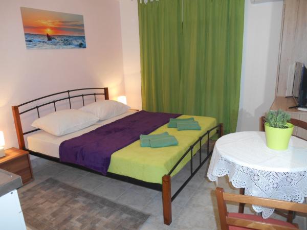 One bedroom with its own kitchen and bathroom, 3 studio apartments (in the category of smaller apartments because they do not cook in the bedroom - they have their own kitchen), ALL THE FLOOR with a large terrace. On the ground floor there is one one bedroom apartment with large terrace on two levels. Everything is in our family house with apartments "Stara Horvatia" in the small and quiet Maslenica, Eugen Kvaternika Street 6, (GPS: 44. 219935, 15. 546109). From the beach we are 170m away and by the way, by the way to the beach is passing by next to the nearest shop. It has a sea view. Maslenica is a pleasant and peaceful Dalmatian place perfect for a peaceful vacation. All amenities are included in the price - all necessities in the kitchen with a water cooker, large fridge with freezer, microwave oven. Bathroom with shower (paper, shampoo, hair dryer). Wi-fi, air conditioning, satellite TV, large terrace overlooking the sea, linen, towels, barbecue and parking in our fenced yard, sojourn tax. All prices, depending on the time - on request. There is no additional charge.