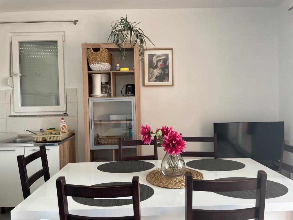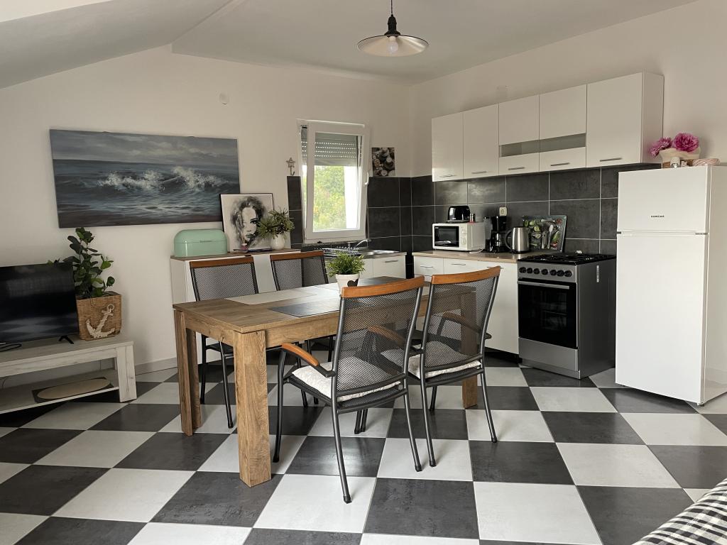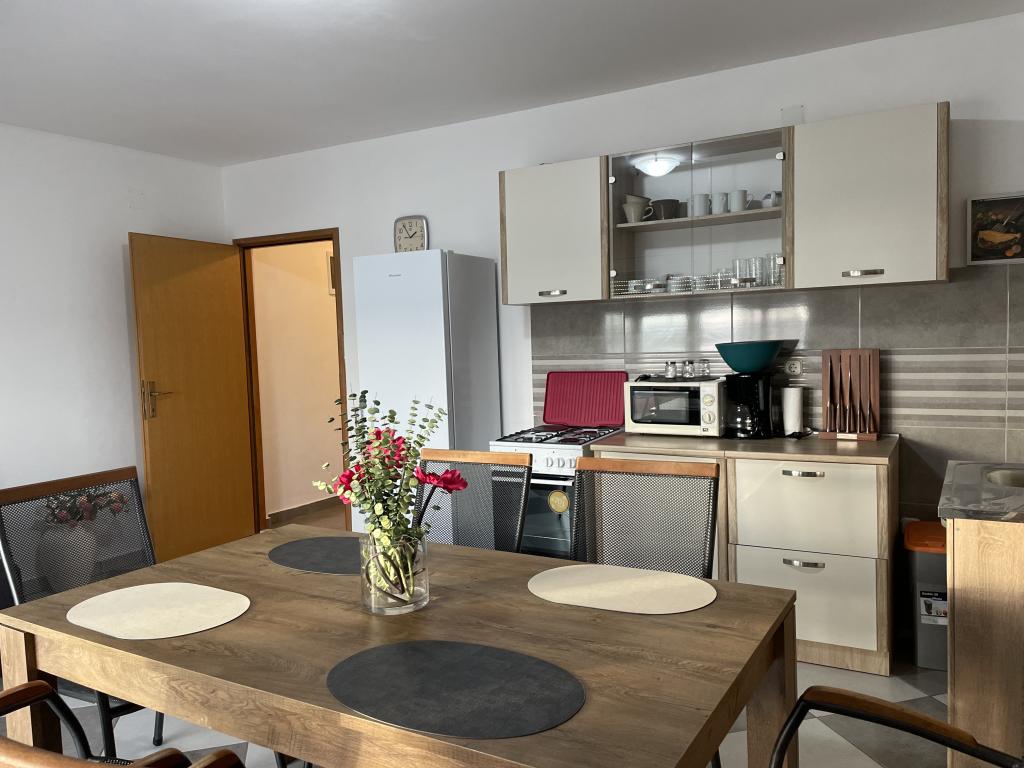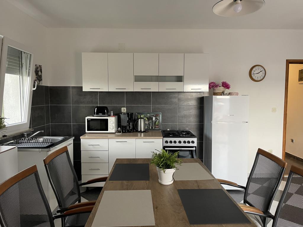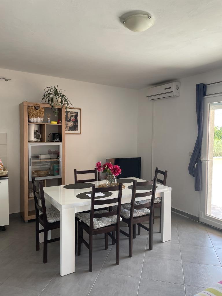 Holiday house of 60 m2 plus a terrace of 31 m2 is located in the center of Maslenica near Zadar on a plot of 1273 m2, away from the beach 5 minutes walk. The owners do not live in the house and the guests are staying in the entire building. The house consists of two bedrooms, bathroom, kitchen-living room and hallway. The terrace has sun protection. Bed linen and towels are changed every 7 (seven) days for stays longer than 7 (seven) days. The kitchen is equipped with all necessary equipment and supplies Tableware and dining. The house is equipped with iron and ironing board machine, dryer, hair dryer, coffee maker and kettle. Using the Internet, air conditioning, satellite TV, parking, hair dryers and washing machines are not naplaćuje.Kuća is located in a quiet area Maslenice with olive trees and other trees around the building. Welcome!