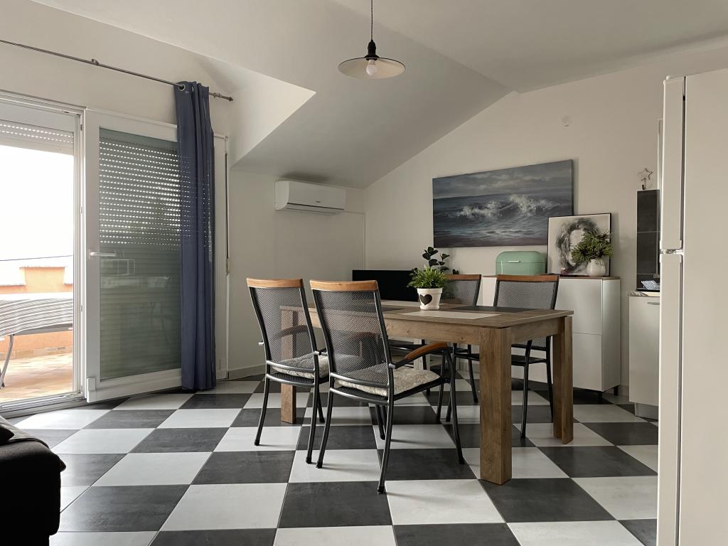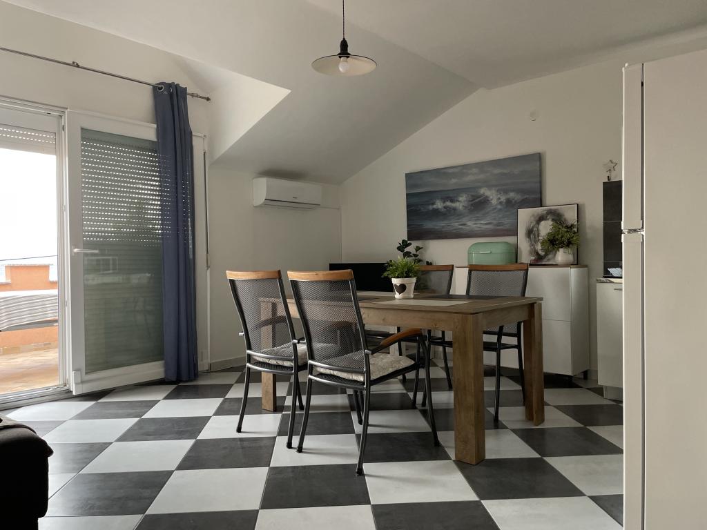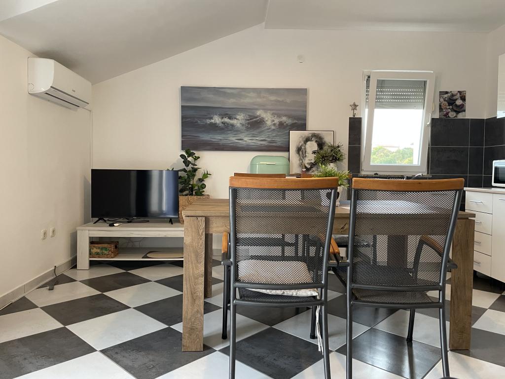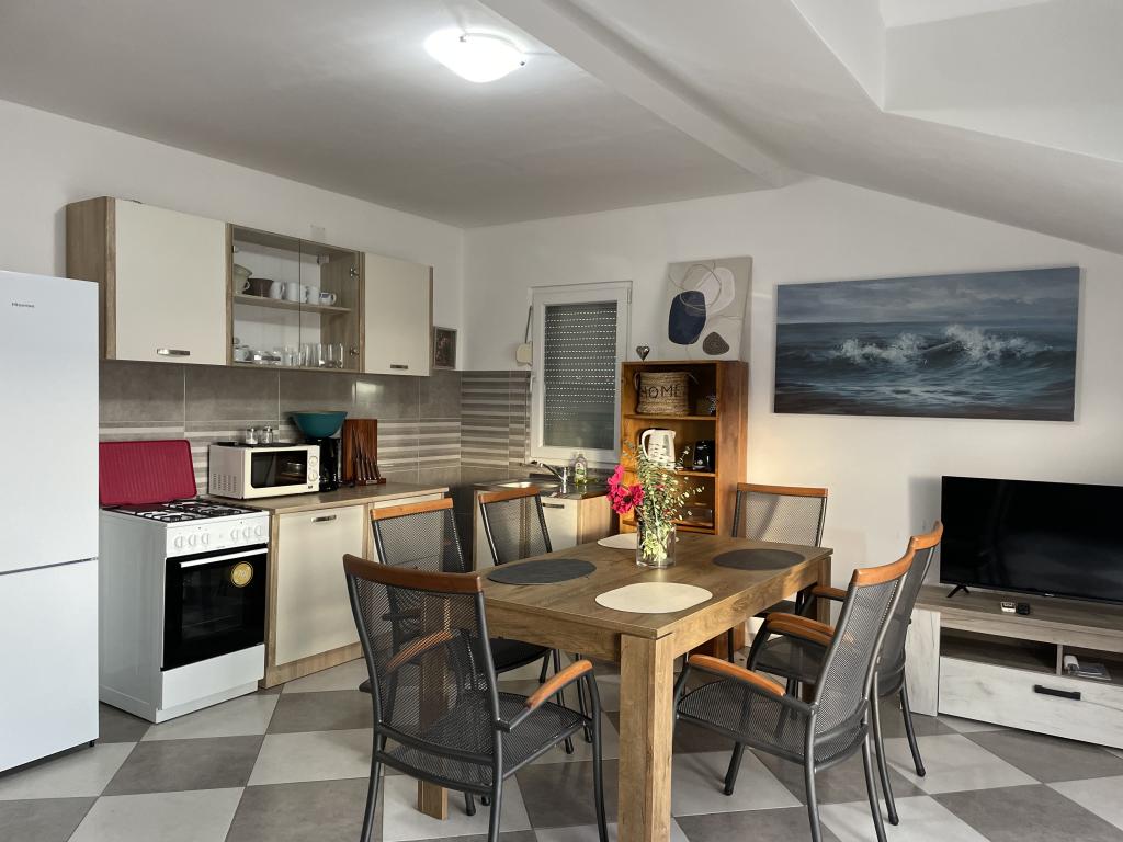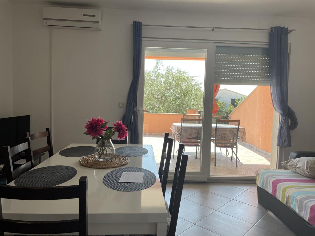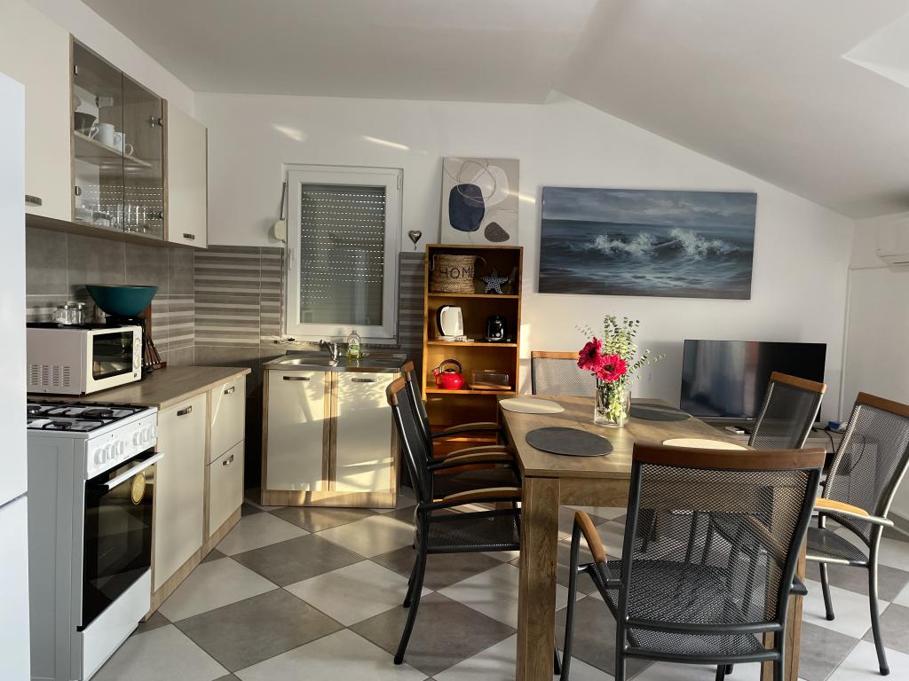 Holiday house of 60 m2 plus a terrace of 31 m2 is located in the center of Maslenica near Zadar on a plot of 1273 m2, away from the beach 5 minutes walk. The owners do not live in the house and the guests are staying in the entire building. The house consists of two bedrooms, bathroom, kitchen-living room and hallway. The terrace has sun protection. Bed linen and towels are changed every 7 (seven) days for stays longer than 7 (seven) days. The kitchen is equipped with all necessary equipment and supplies Tableware and dining. The house is equipped with iron and ironing board machine, dryer, hair dryer, coffee maker and kettle. Using the Internet, air conditioning, satellite TV, parking, hair dryers and washing machines are not naplaćuje.Kuća is located in a quiet area Maslenice with olive trees and other trees around the building. Welcome!
