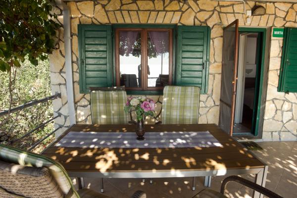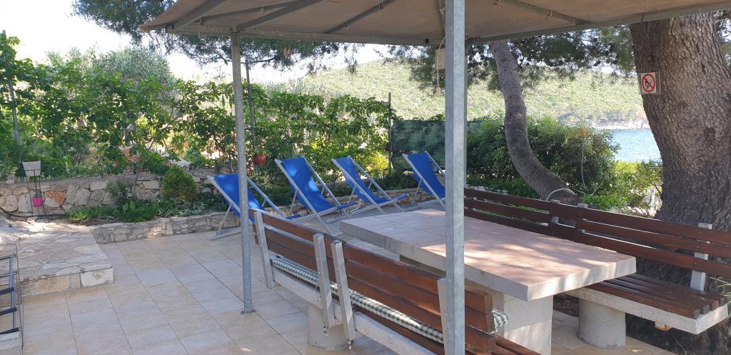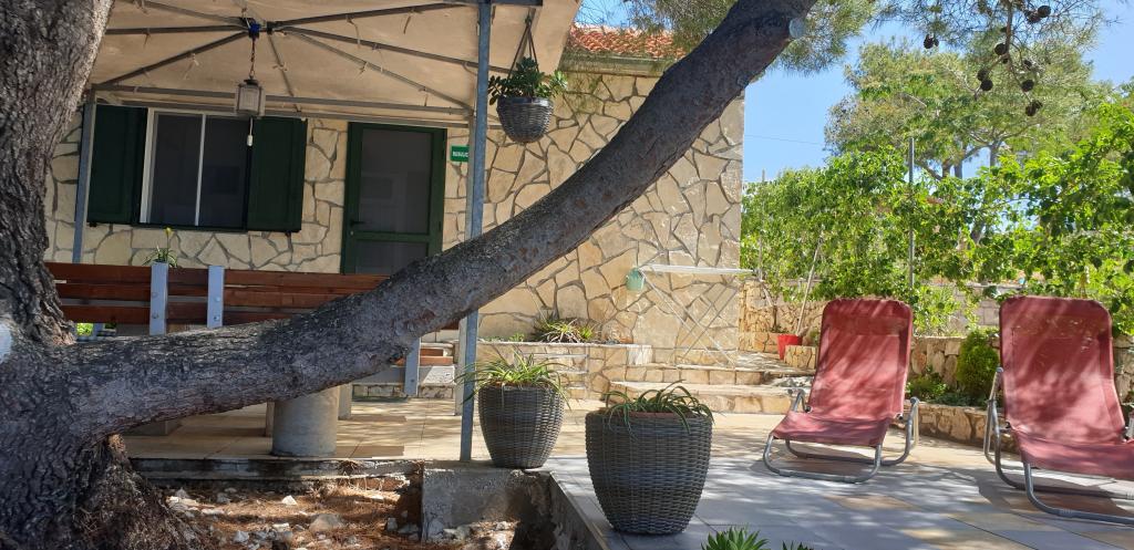 We offer you two smaller stone houses about ten meters apart, each with its own special position offering the intimacy of a pleasant stay. Beautiful panoramic view. The houses are first row to the sea and are located on 1100 m2 of fenced land, to the sea and the concrete beach are 30 m away. The center of Maslinice with restaurants and shops is located 500 m from the houses. The houses can be reached by a road 300 m long. There is also a barbecue, outdoor shower and parking. House Mirta of 45 m2. It has two bedrooms (one double bed, two single beds), living room with extra bed, kitchen, bathroom, terrace 25 m2 with natural shade. House Rusulica of 35 m2. It has two bedrooms (one double bed, two single beds), living room, kitchen, bathroom, terrace 25 m2 with natural shade.