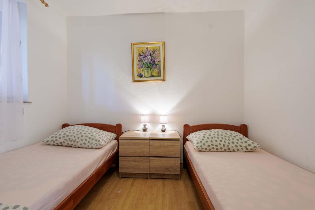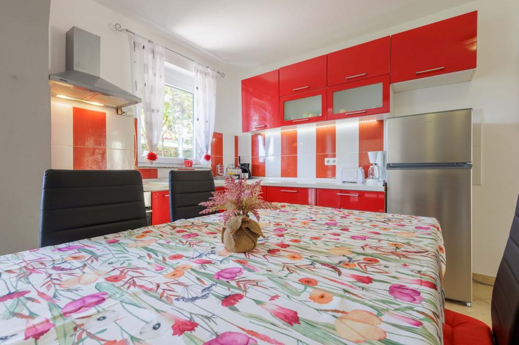 Apartments Marin in a quiet part of Medulin, in the settlement of Pošesi, offer you a fully equipped apartment: on the ground floor, a two-room apartment with 4 beds, just fifty steps from the beach with a sea view, parking and a Jacuzzi on the ground floor. Jacuzzi is available for an additional fee of €15/day. Distance from the famous sandy beach Bjeca is 800 m.