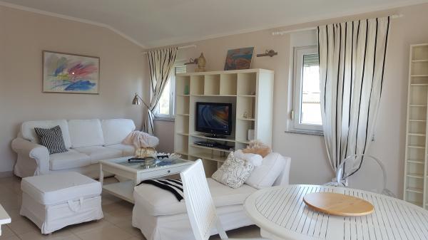 Luxuriously designed two-level penthouse with a 360* panoramic view consists of a spacious living-dining-kitchen open area surrounded by glassy doorway which leads to a terrace giving a marvelous view overlooking the see and the beach, 3 sunny and bright bedrooms, 2 bathrooms, one with a shower, one with a bath-tub and steam-hydro massage shower, a fitness room, a gallery as a study, a laundry room and a balcony.The apartment is air-conditioned, with a security doors and a videophone.It has 2 marked parking places in the courtyard. The apartment is fully equipped with all appliances such as ceramic child-proof stove, oven, microwave, refrigerator dish washer, washing machine, as well as LCD TV, satellite, DVD, internet, Wi-Fi. Mixing comfortable designed furniture with owners personal paintings, photos, sculptures collected all over the world, we hope apartment Vendramin is offering you warm cozy feeling of home.