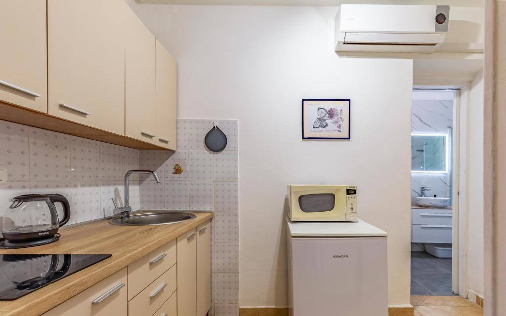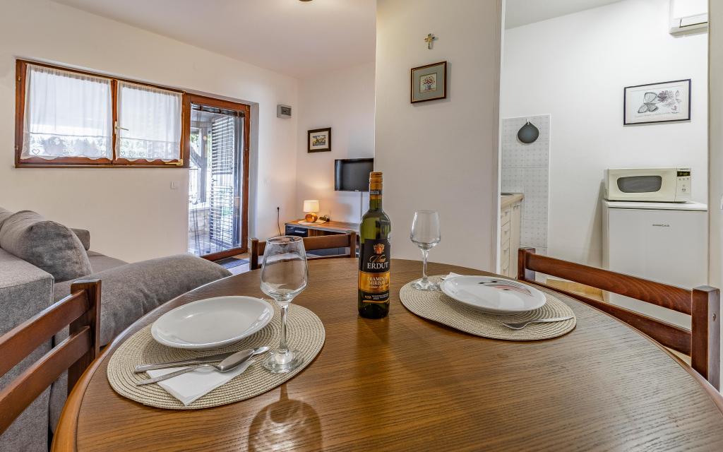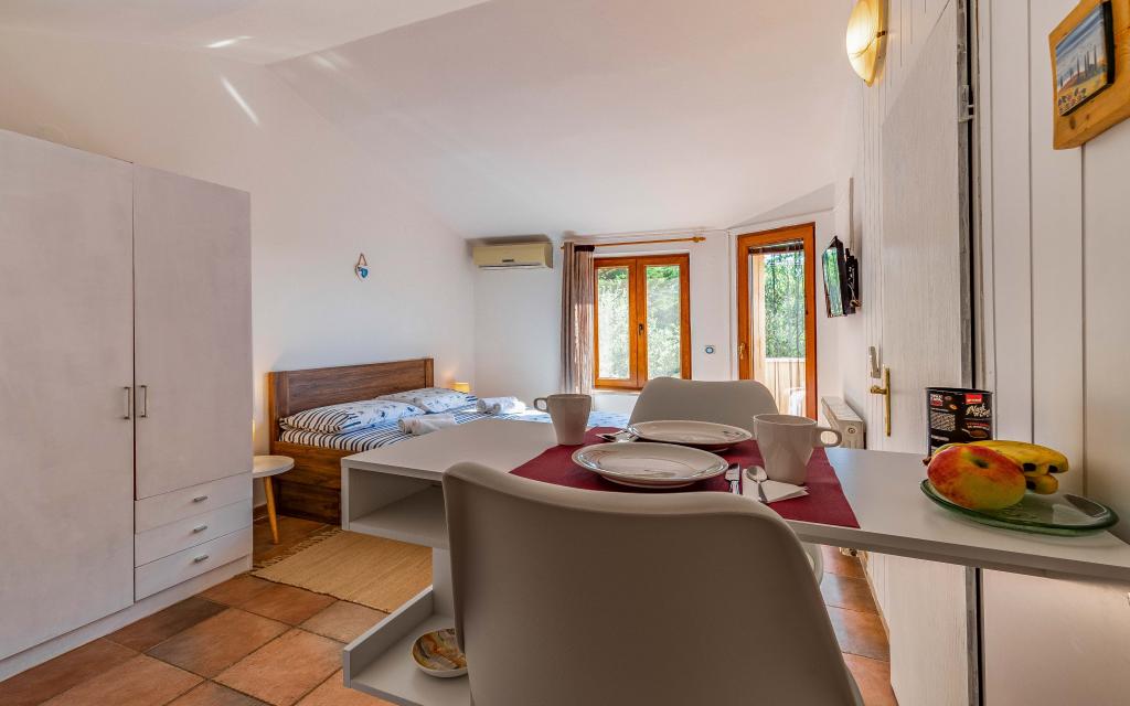 I highly recommend. Compliant schedule and easy contact, quick response. Perfect location for walking, beach nearby. Parking, small kitchen, bathroom, comfortable bed, wifi so everything you need for a pleasant stay. Welcome with figs from the garden, advice, Nikolina is naturally kind and caring. I keep this contact for a future trip. Thanks