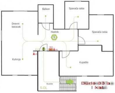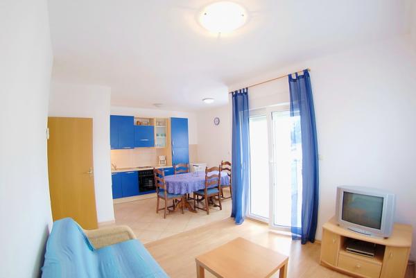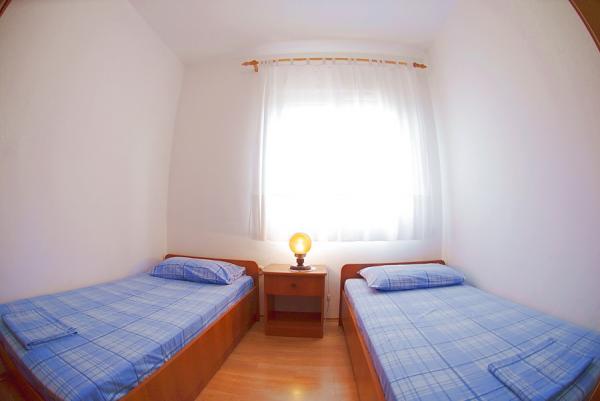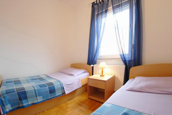 The apartment is located in Medulin, surrounded by greenery and a new and fully equipped house. The first floor with a size of 60 m² comprises a living room with a fully equipped kitchen with oven, microwave, coffee machine and single sleeping couch. There is also one bedroom with double bed and one bedroom with two single beds. The bathroom has a shower and bidet plus wc and washing machine. From the hallway you can go to the terrace for four people. Parking space in front of the house. Property is free standing and wild untouched nature on the one hand, and comfortable hotels, campsites and apartments with a variety of activities on the other hand, provides ideal conditions for rest. Medulins unique sandy beach, Bijeca, is one kilometer long and attracts families with young children.
