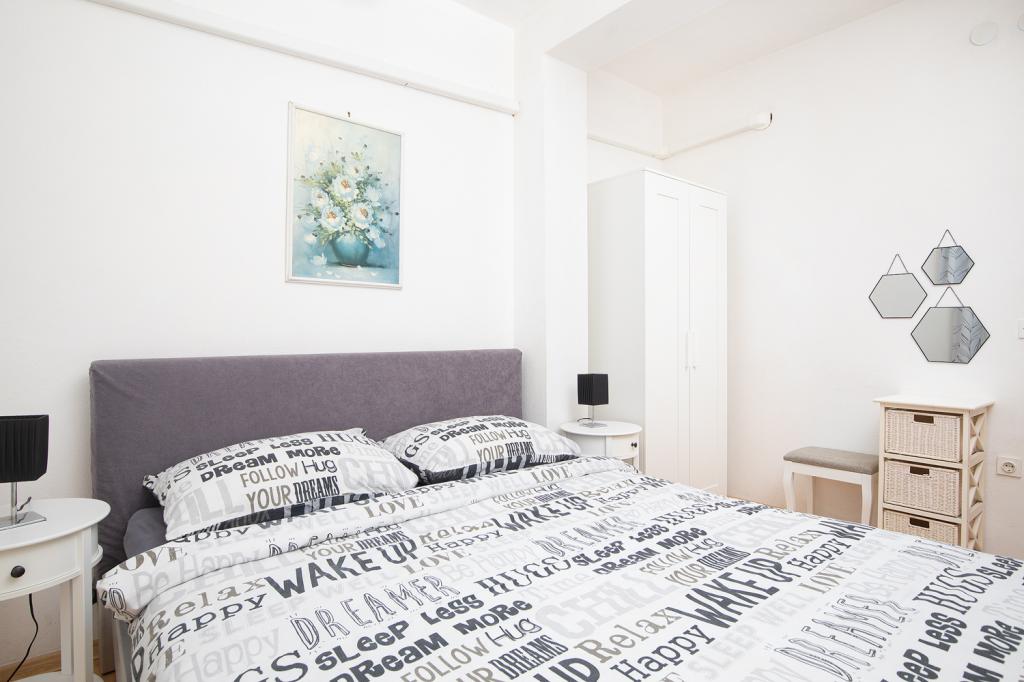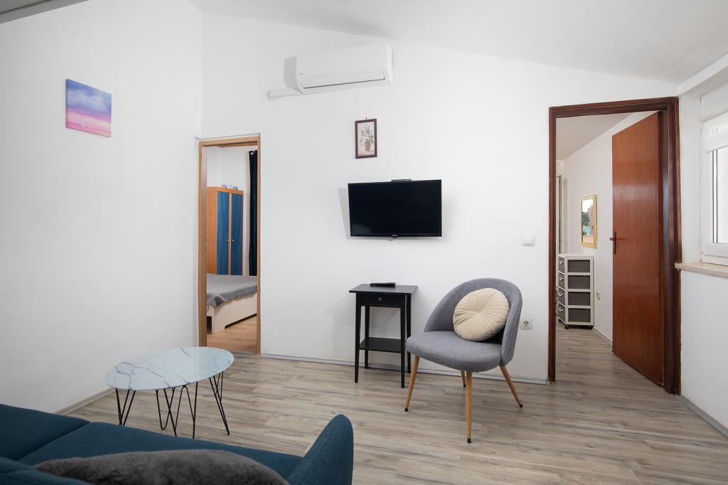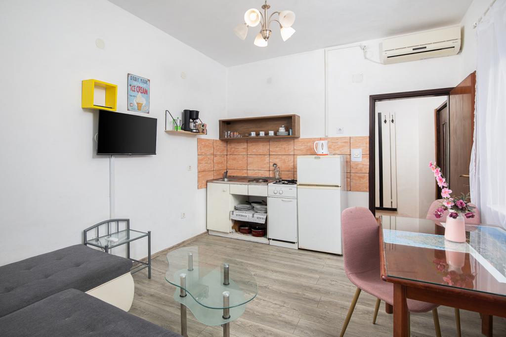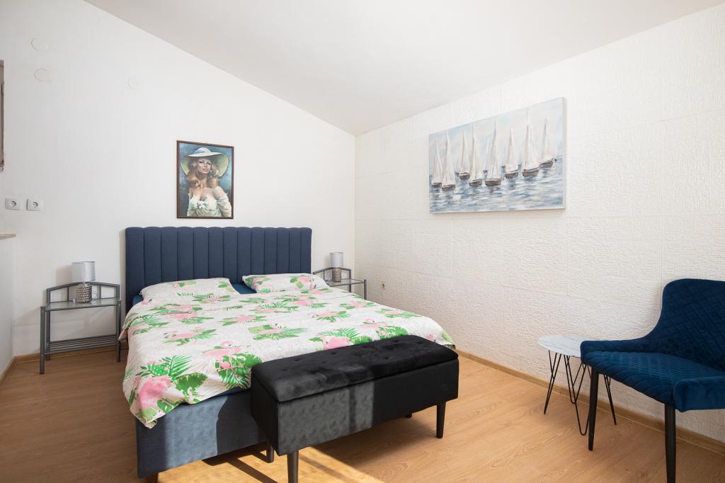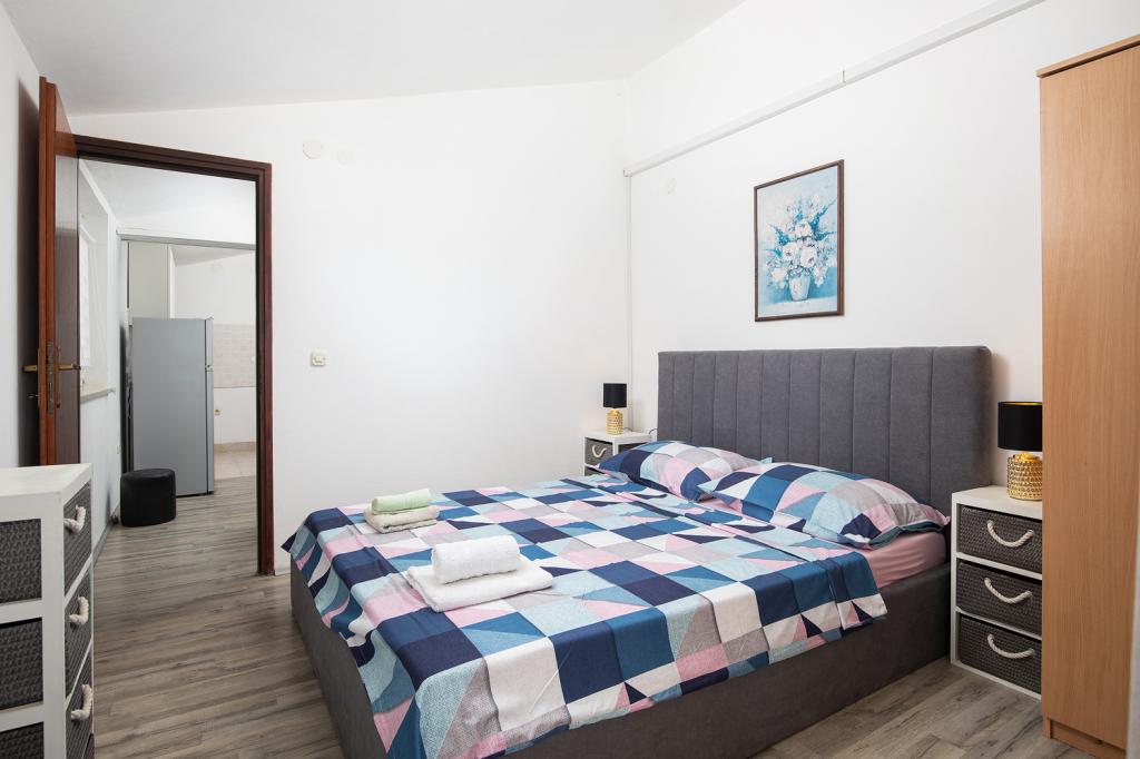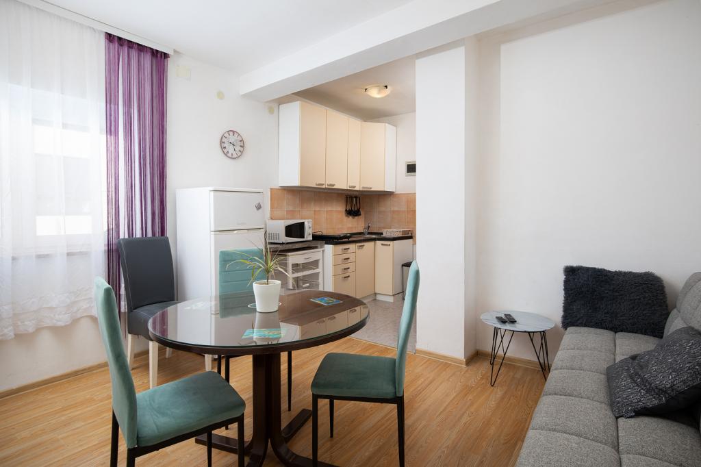 Apartments on the 1st and 2nd floor for 4-5 persons away from the famous sandy beach Bijeca70 meters. The apartments are located 2 minutes walk from the summer town center. There is a marina, numerous restaurants, shops, an entertainment center for children, and a beautiful pine forest with an autocamp.