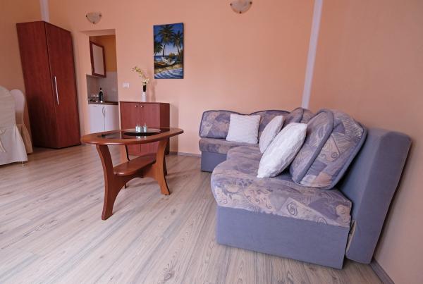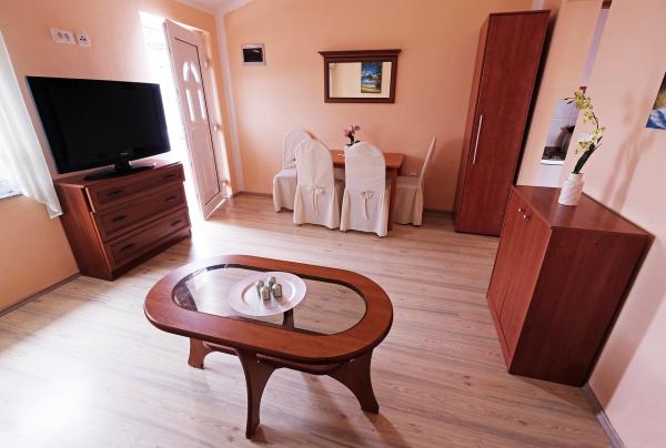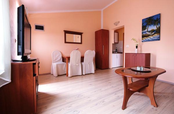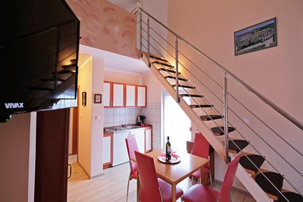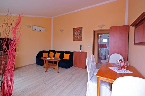 Fully equipped and modern apartments in the immediate city center of Medulin in a peaceful location. The facility is located 5 minutes walk to the nearest beach and 10 minutes walk to the large sandy beach. Across the building is a large supermarket. In the building there is a restaurant with a large outdoor terrace, so you can have at your service breakfast and dinner.