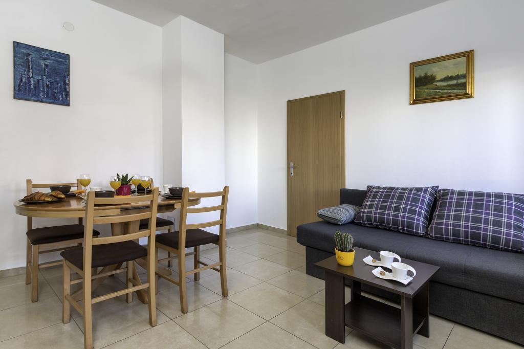 We stayed a week in July. Perfect reception, Jelena does not know Italian but speaks English very well and ...... we understand each other. We stayed in 4 (2 adults + 2 big boys) in the ZLATA apartment which reflects exactly what you see in the picture. Clean, tidy, with wifi, air conditioning and parking space. The only flaw is that the double bed is positioned in an area of the attic that when you get up you risk taking it a headboard and that the nets (even if visibly new) have not held my husband's weight and we have repeatedly had to reinsert the slats that came out of the offices. The position of the apartment is perfect for the sea (you go comfortably on foot) and for the center that offers various opportunities in the evening. We were recommended by Jelena and for the whole period we went to Premantura Kamenjak which I recommend to all sea lovers the wonderful one !!! Medulin is a country, which offers everything suitable for families with children but also for young couples. I saw that it served, also by public transport. We will certainly return.