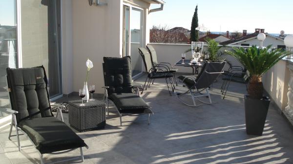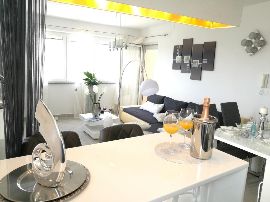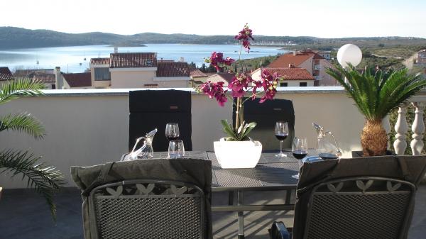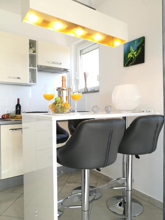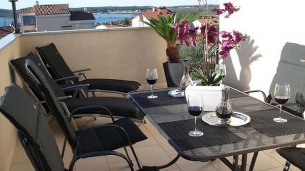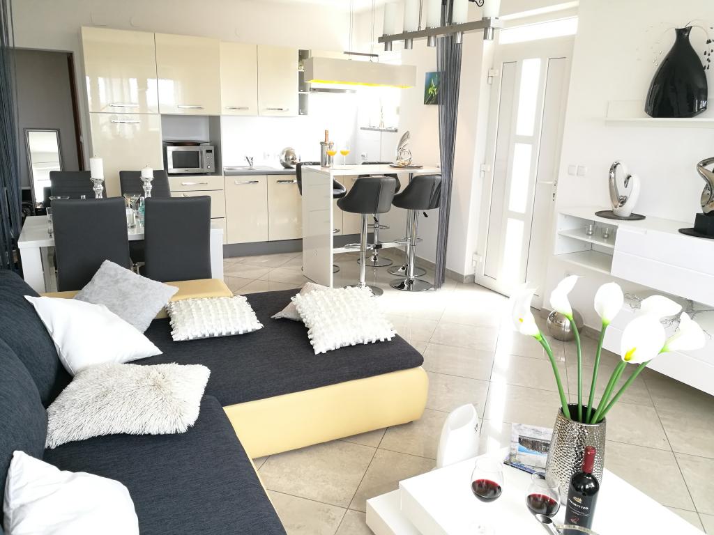 Apartments "Villa Meli Medulin" are located in a quiet part of the town of Medulin on Istrian peninsula, a popular place for summer vacation and recreation. Within the house there is free parking, wi-fi and grill available to all guests. Additional amenities include a restaurant (Lidl, Plodine), restaurants, sports and entertainment facilities. Fresh air, clean sea and air conditioning, are a guarantee for a pleasant relaxation. Comfortably furnished and fully equipped apartments are the perfect choice for families. You can choose one or two bedroom apartments of your own choice. Apartments are located 1000 meters from the sea. All apartments have a beautiful, direct sea view. Nearby are also the popular sandy beach of Bjeca, Kamenjak park, the islands of Ceja, Bodulaš, Levan. Enjoy and relax on your vacation, will surely provide you Villa Meli Medulin apartments. For guests staying two or more weeks, the host organizes a free barbecue.
