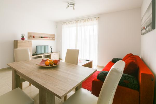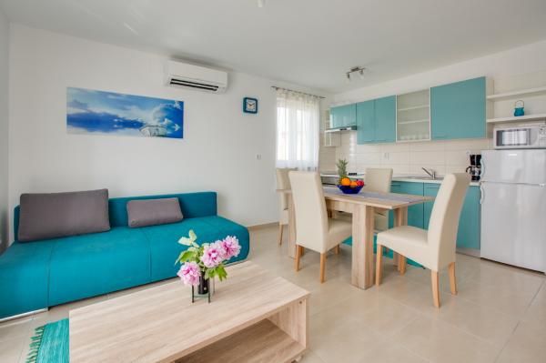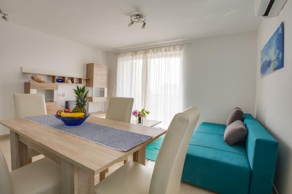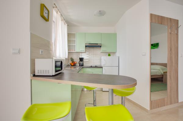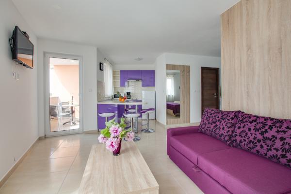 - New, modern apartments in new building - Ideal location next to the sea, beach nearby, nice view Apartments red and green are on the ground floor Apartments blue and purple on the first floor - The first season of renting! - All included in the price, no extra charge for WiFi, air conditioning, barbecue, parking, tourist tax.