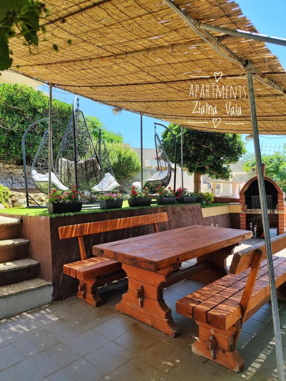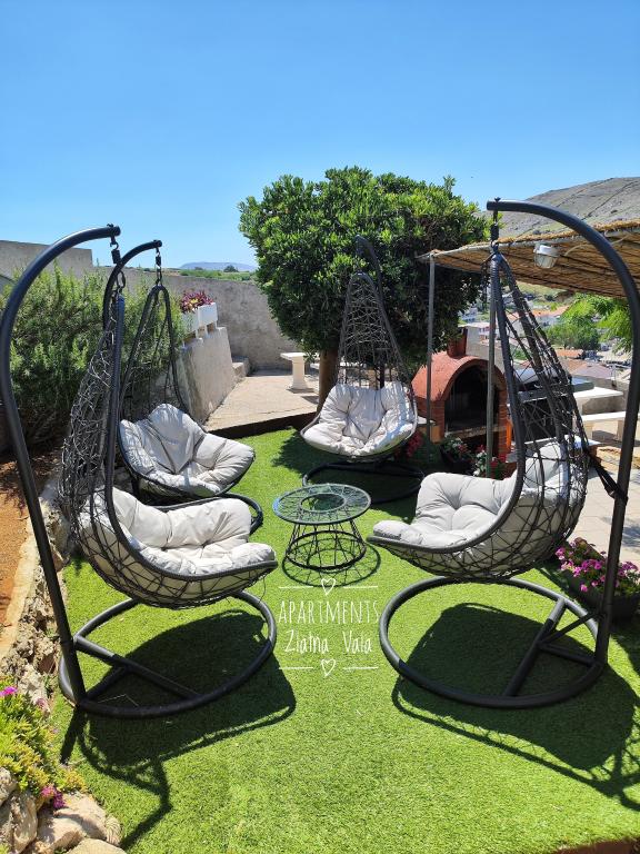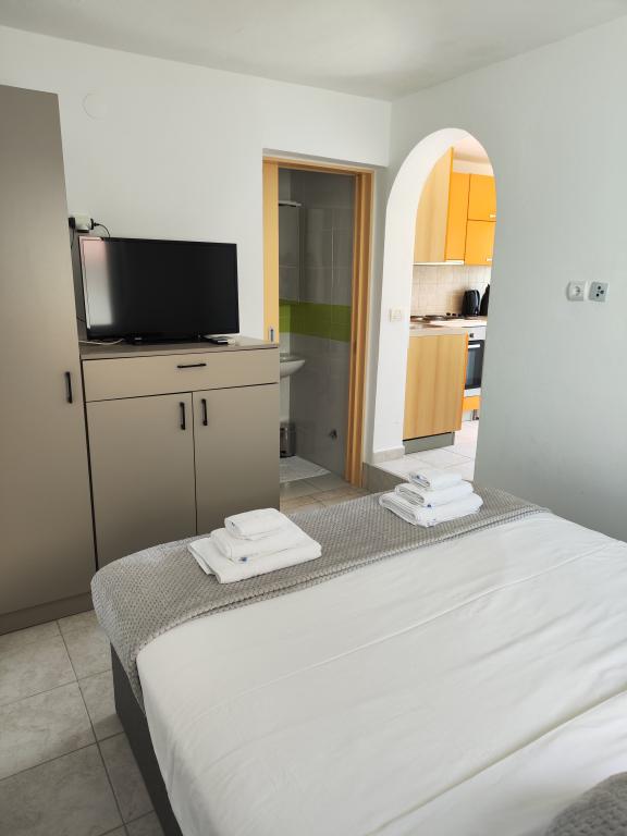 Apartments Bingula are located on a small hill called Glavica, 150 m away from the sea and the center of Metajna. The proximity of the center and the sea allows our guests to be in the middle of events in a short time, and also to retreat to the peace that our site offers. For our guests there are several terraces with common grill, and for the youngest guests we have a small playground so that the parents can relax unlimitedly. All apartments are fully and modernly equipped: kitchen with living room, bathroom with toilet, air conditioning, SAT TV, WLAN, balcony with sea view .... For those who opt for halfboard we offer Croatian specialties and international specialties with Croatian gingerbread. If you miss something, there are always your hosts who will be happy to come and meet you. We are looking forward to your arrival, Family Bingula