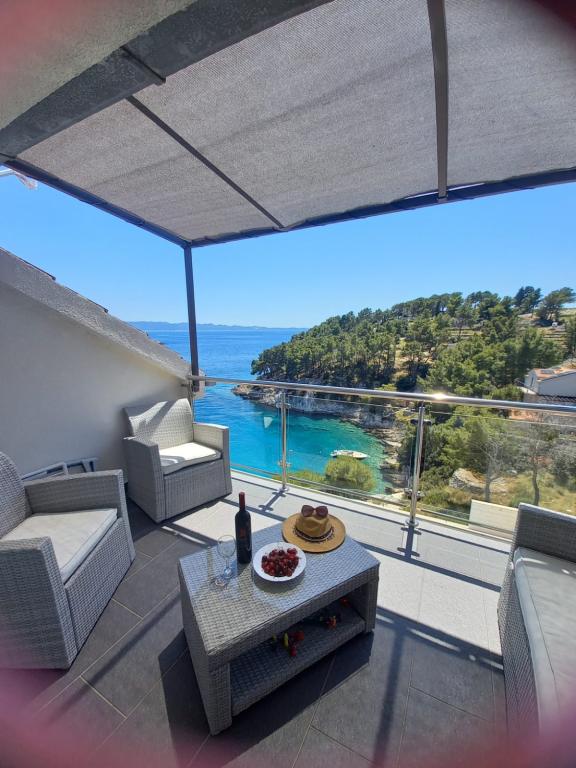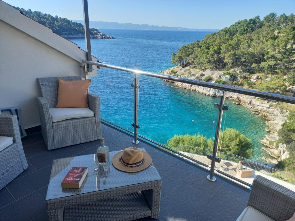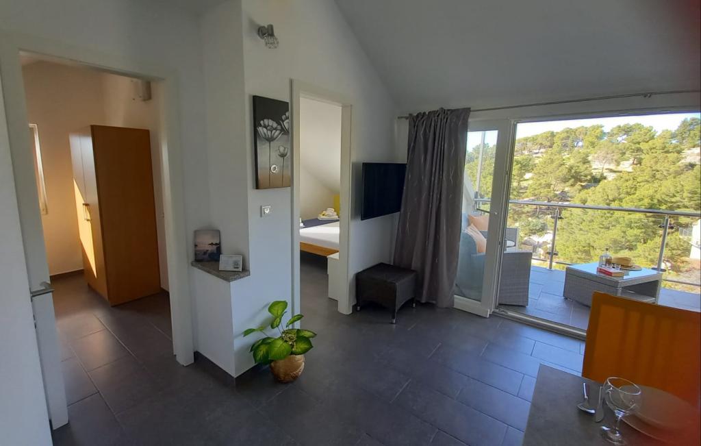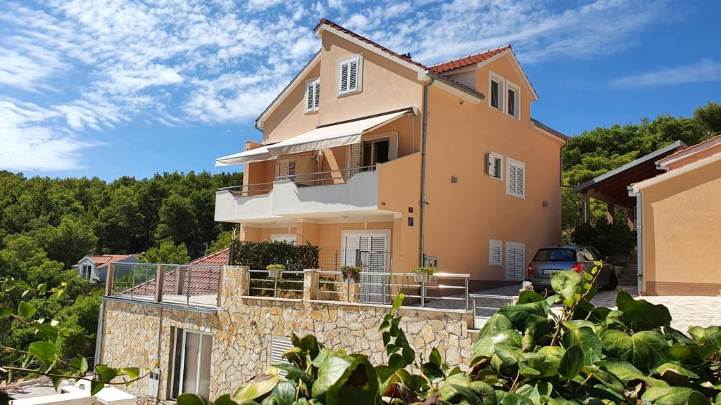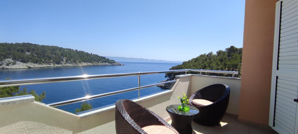 Our newly built house is located in the first row to the sea in the small sheltered bay of Osibova on the north-western side of Brac. The facility has five completely and modernly furnished apartments. The beach is only about 20 meters away. For your pet, we have a covered parking space not far from the building. If you come by boat, we have secured a place for your trailer. Of course we also have a barbecue. Each terrace or balcony is also furnished. . A 30-minute easy walk takes you to the small town of Milna, where you can find a number of nice restaurants, cafe bars, promenades and the possibility of buying groceries.