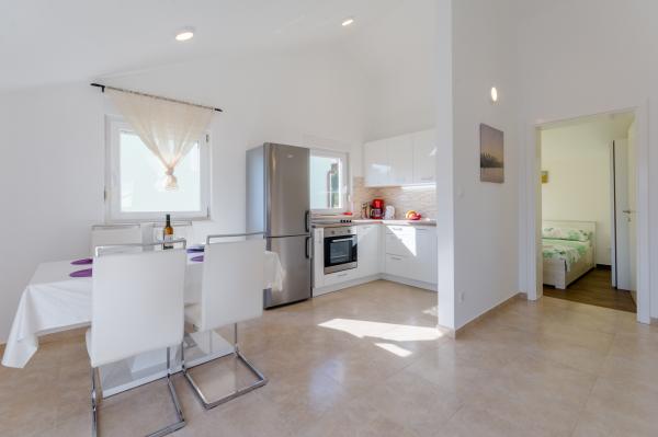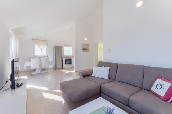 Residential tax is included in price.The apartment is very clean, modern, and very well-equipped. It has a large refrigerator, a stove, a dishwasher, and a washing machine. The owners are very friendly and helpful. The surroundings are beautiful – nature combined with modernity. The town is not large, so you can relax on the beautiful pebble beaches. The town of Milna is a leisurely 30-minute walk away, along a beautiful street surrounded by olive groves. We thank the owners and recommend them.