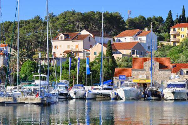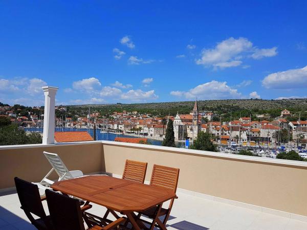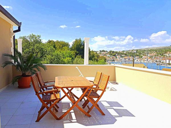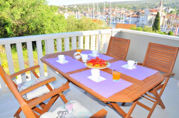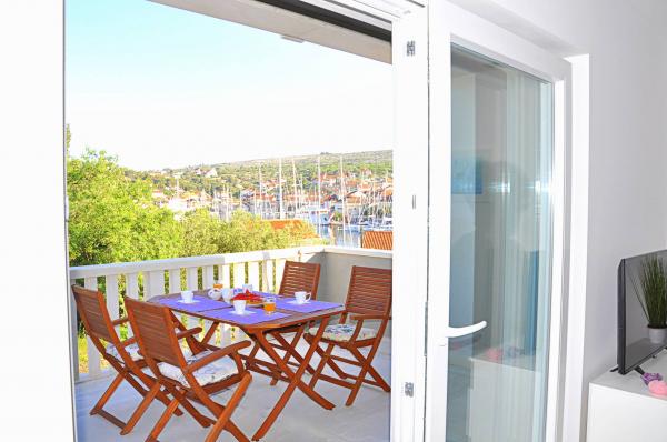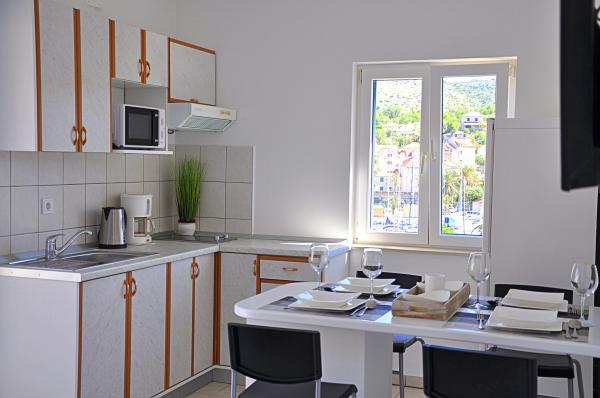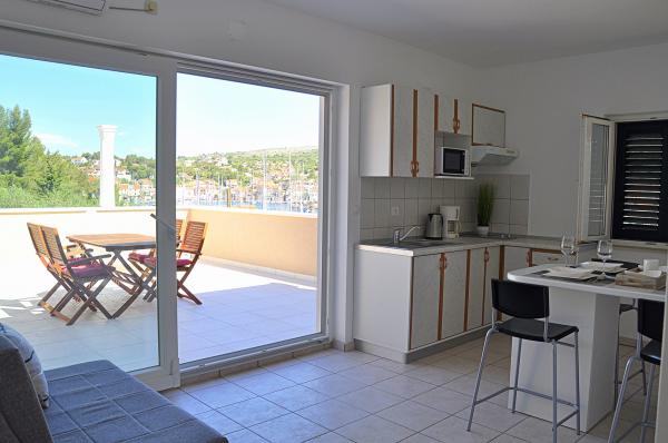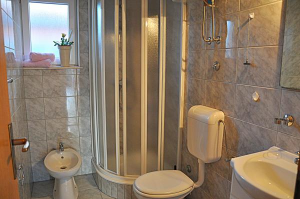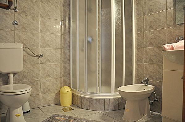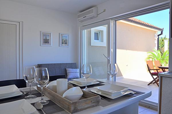 The apartments are located in a family house which is situated in a quiet location and only 10 minutes walk to the center and 15 from the nearest beach. We offer two apartments. A2 (4 1) 60m2 Star contains a fully equipped kitchen with an exit to a large terrace with a beautiful view of the bay. The apartment has two bedrooms, two bathrooms, which include hair dryer and complimentary toiletries. Washing machine, TV, satellite, internet and grill. We allow pets. A1- newly furnished apartment with a 4 star, 80m2, two double bedrooms with LCD TV, two bathrooms with showers (hair dryer and personal beauty accessories) spacious living room with LCD TV and a modern sofa bed, fully equipped kitchen with dishwasher and dining area. The whole apartment is air conditioned and has underfloor heating, TV with satellite TV and Wi-Fi internet. It also has a spacious terrace with panoramic views of the bay and free parking and grill