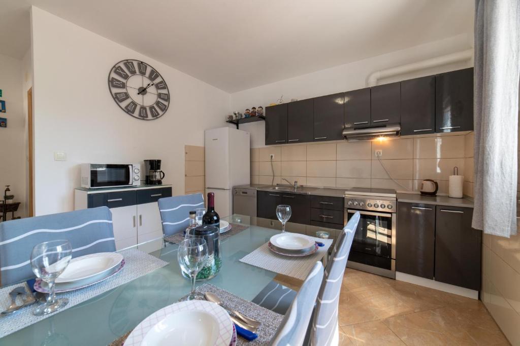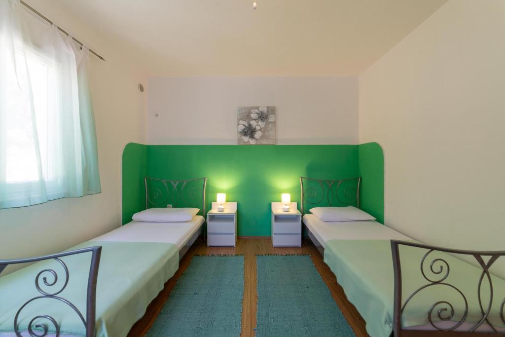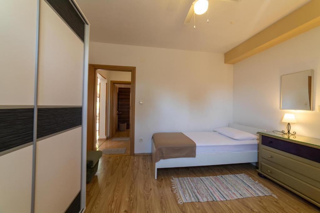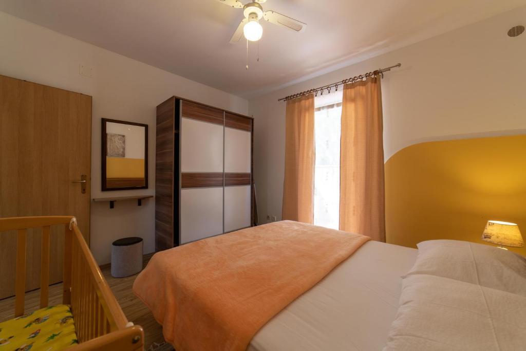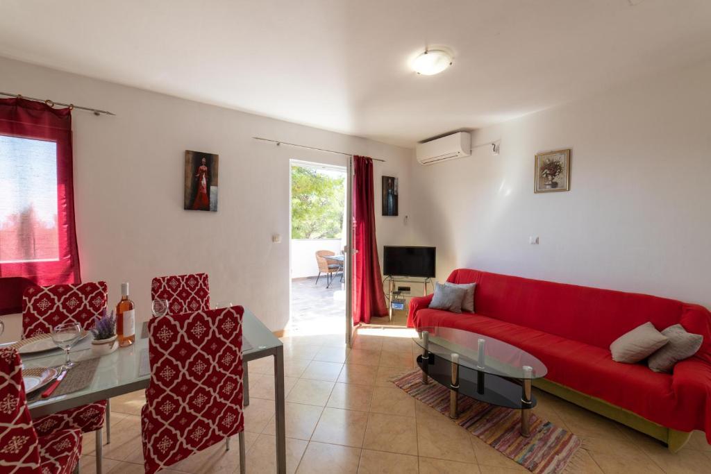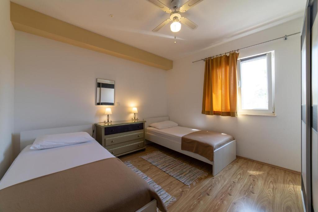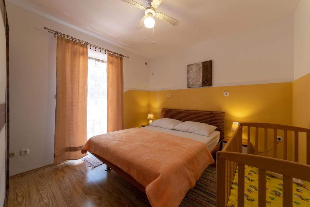 If you want to spend a quiet summer vacation, without noise and beach crowd, we can offer you a house at Solta island, near Split, in small bay Donja Krusica. A house has 4 separated and modern apartments. In front of the house, there is a yard covered by vine stems which make pleasant shade in hot summer days. House has 2 floors and 2 apartments for rental with terrace and beautiful garden. North from the apartments you have beautiful garden with barbecue and garden furniture. South from the house each apartment has balcony with beautiful sea view. Each apartment consist of: 2 bedrooms, 1 bathroom, 1 kitchen living room, balcony, garden barbecue (shared with another apartment). Balcony has magnificent view on the city Čiovo, Kaštela and Split. Apartment has capacity of 4 1 people. If there would be more than 5 people we will ask you to pay extra money.