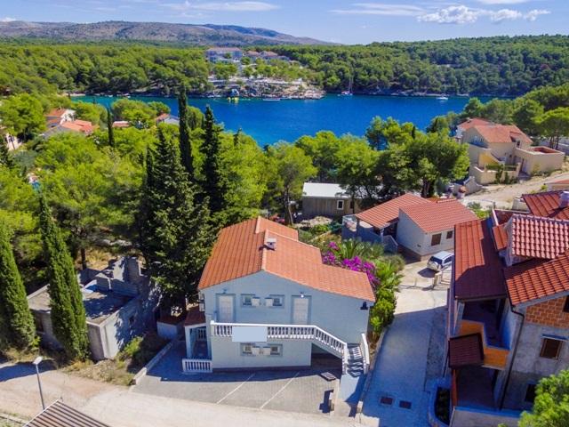 Villa Klara is a detached property that can accommodate a maximum of 9 people. It is 50 meters from the beach, located in the beautiful Osibova Bay, which provides crystal clear sea. It is an ideal place for lovers of swimming, diving, and for escaping the city crowds and enjoying a vacation. The nearest grocery store is in Milna, two km away. The villa has three one-bedroom apartments. Each apartment has a separate entrance, a living room with an extra folding bed, a bedroom with a double bed, a bathroom with a shower, a mini kitchen, and a terrace with a sea view. The apartments are equipped with SAT-TV, WI-FI internet, and air conditioning. On the ground floor of the villa there is a shared kitchen and a 20 m2 terrace for socializing. Within the villa, guests can enjoy and relax in the beautifully landscaped garden with a hydromassage heated pool - jacuzzi for six people, a grill, The beach for children and non-swimmers is about 50 meters away, and the beach for swimmers is a few meters away. The host will be happy to provide you with a boat mooring, which is a hundred meters away from the Villa, and to direct you to the attractions of the island of Brač. A pleasant stay on Brač due to the mild climate, many sunny days and warm sea is possible from the beginning of May to the end of October. Parking space for three vehicles in front of the villa. Arrival and departure: check-in from 16:00, check-out no later than 10:00. Deposit: 30% by bank transfer, and the remaining 70% by payment before arrival or when collecting the keys. Cancellation fee: 0 - 60 days before the arrival date no refund, 61 and more days before arrival 90% refund. Pets are not allowed. Parties / events are not allowed.