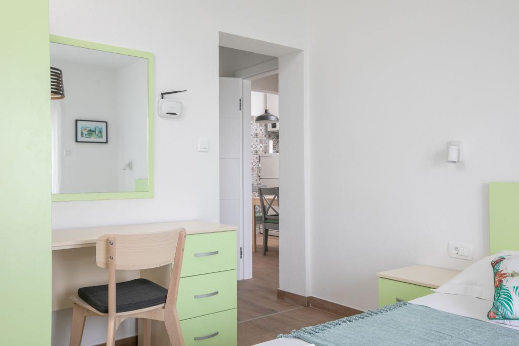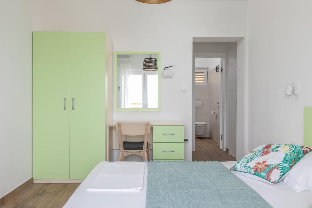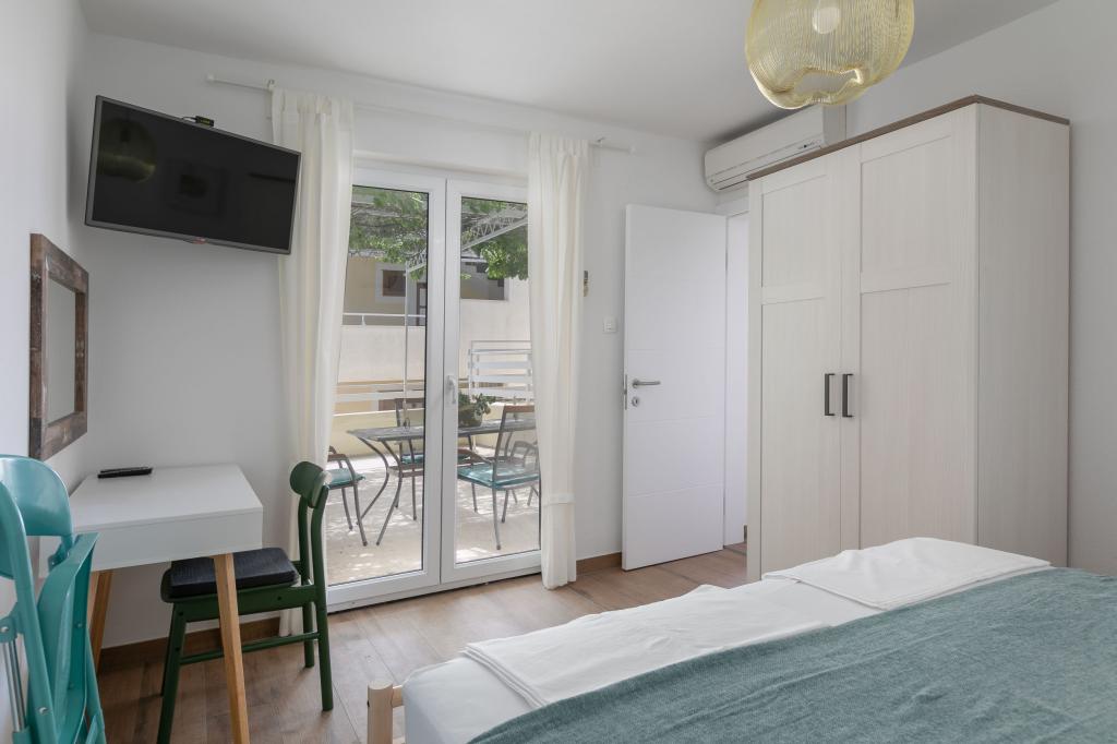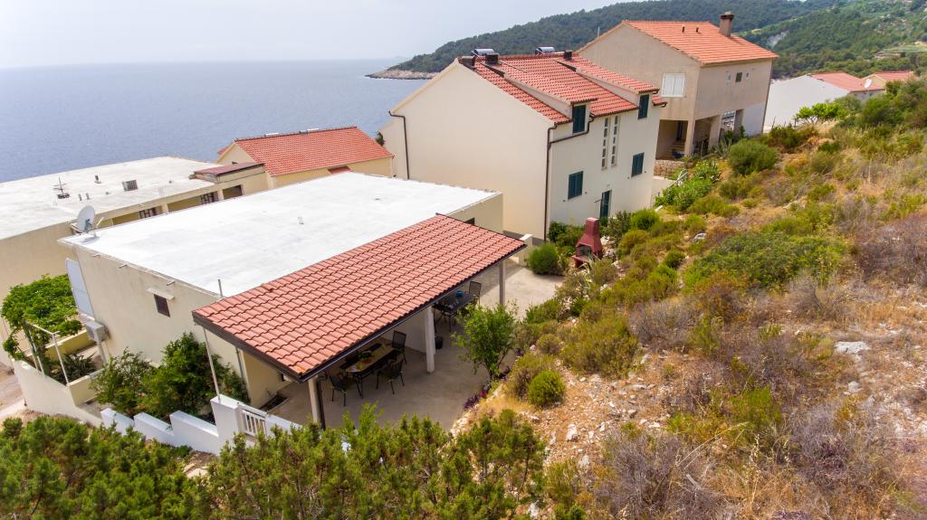 Double and quadruple apartments, and an apartment with a large terrace, are located in a quiet part of Milna. It is located 5 minutes from the center and the first beach. Suitable for families with children. The proximity of the town of Hvar (3 km) is also suitable for young people where during the day they enjoy the benefits of the small town of Milna and hidden bays for swimming, and at night the town of Hvar provides them with unforgettable night entertainment.