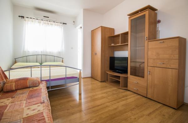 Apartment Ivona is located in a small and quiet place Mimice. Mimice are 12 km away from Omis, 25 km from Makarska, about 38 km from Split and 55 km from Split Airport. The apartment is furnished as a studio apartment, with separate kitchen. In addition to the main double bed there is an extra bed for one or two people. It has a balcony with a sea view and an outdoor terrace with barbecue. The apartment has all the necessary appliances: air conditioning, boiler, fridge with freezer, electric kettle, stove and coffee maker, TV and unlimited internet usage. The owner is in the building and is available 24/7 to his guests.