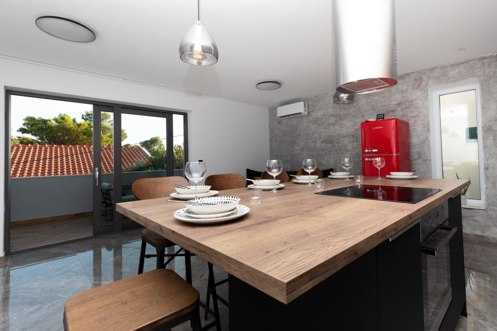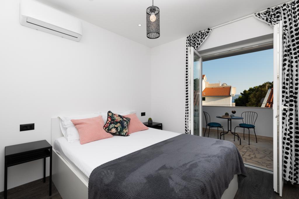 Completely newly decorated modern apartment consisting of 2 bedrooms, 2 bathrooms, sofa bed, 2 balconies and 1 terrace. Equipped with all necessary accessories. Jacuzzi. 20 m from the beautiful beach in a quiet hamlet Medici. 13 km from Omis and 20 km from Makarska.