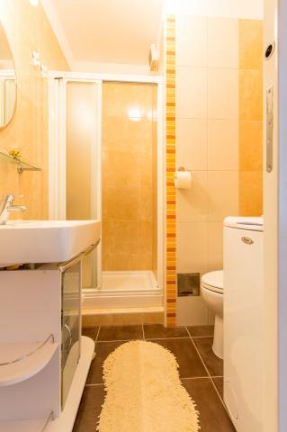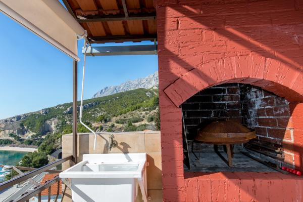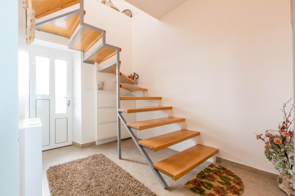 In a modern Mediterranean stone house is located apartment Sole, which is located on the southern Adriatic coast, in the picturesque village of Medici, located 35 km from Split and 10 km from the town of Omis. Apartment Sole is spread over two floors of 140 m2, fully equipped. On the lower floor is a double bedroom, kitchen and living room with extra bed and bathroom. On the upper floor there is a double bedroom with walk in closet and access to the terrace, kitchen, dining room and living room with sofa bed and access to the terrace and bathroom. The terrace offers a breathtaking view of the Adriatic Sea and the nearby island of Brac. On the terrace there are fireplace and to enjoy the view of the blue sea. Medici was famous for its long pebble beach and pine shade, you adore children and adults, a distance of approximately 100m from the house. Other important facilities, shops, restaurants, cafes, post office and tourist office are located in Mimice, only 10 minutes walk from the apartment Sole.