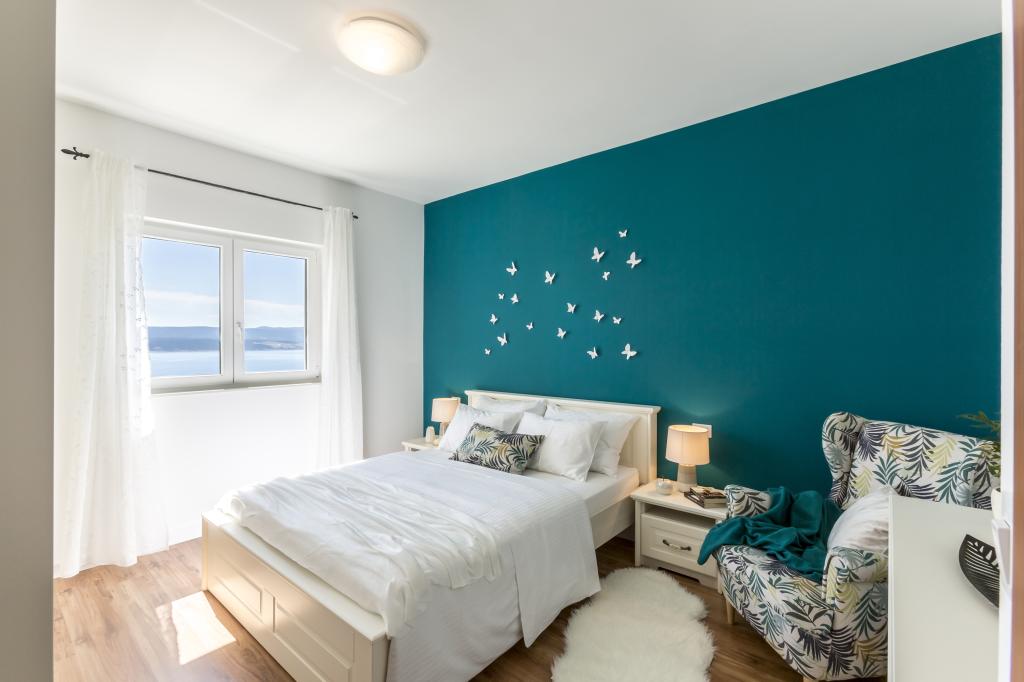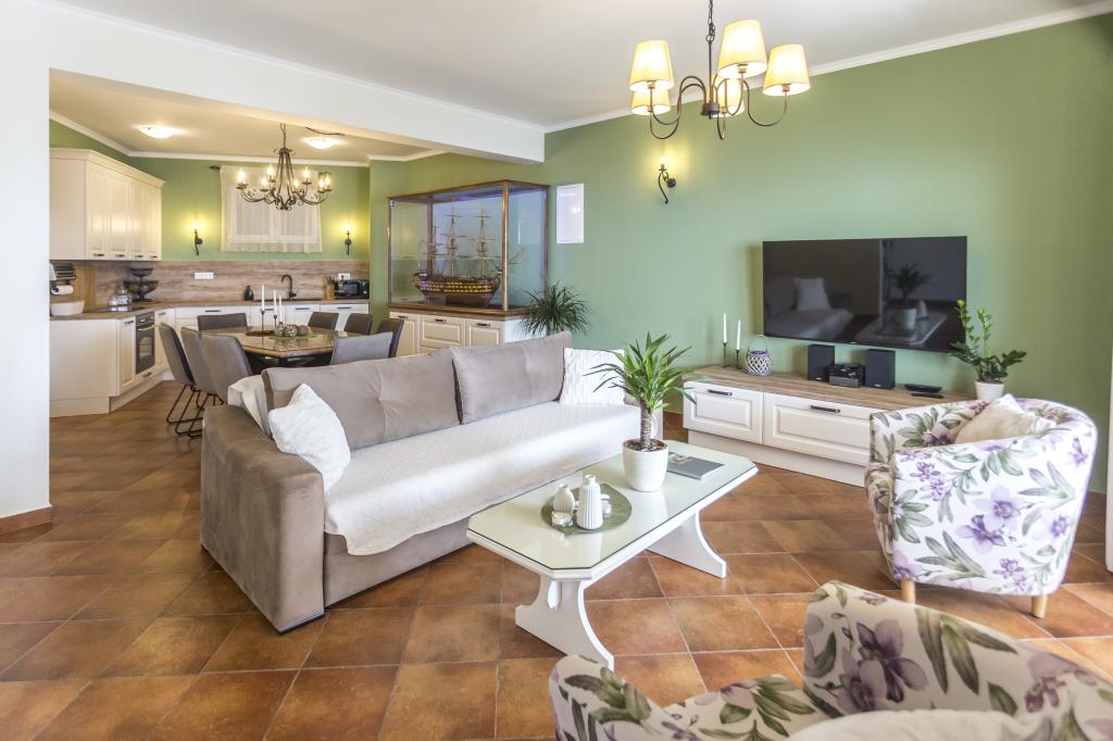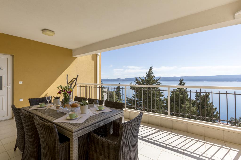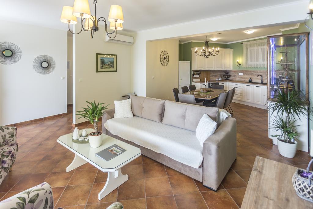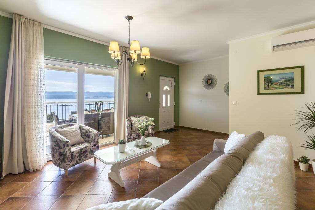 Apartment VICTORY is located inside a detached villa near the quiet village of Mimice with a beautiful sea view in front and beautiful mountain nature behind the villa. An ideal space and location for family travelers who want to escape the crowded and noisy tourist areas. Local beaches are only a 10-minute walk away, including restaurants, beach bars and a local market. The apartment is luxuriously furnished with brand new furniture and all necessary equipment. The apartment size is 120m², accommodates a maximum of 8 guests and consists of: *Three (3) bedrooms equipped with air conditioning and new furniture. *Two (2) bathrooms with toilet and washing machine. *Large dining room (for 8 people) with a brand new kitchen equipped with all necessary dishes. *Large living room with a large sofa and two armchairs. *Large balcony (20 m²) with a beautiful sea view with a dining table for 8 people. The apartment is equipped with a large satellite 55” smart LED TV and audio system, with air conditioning.