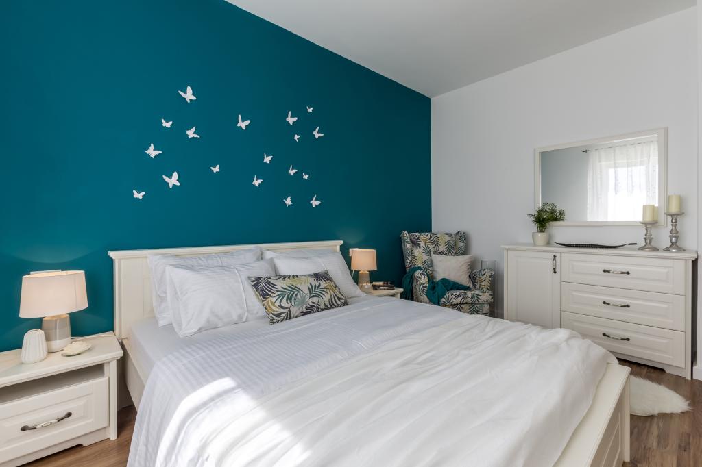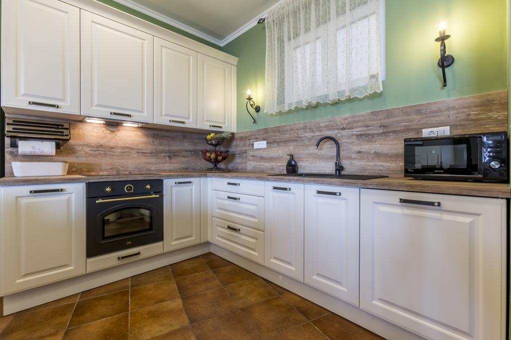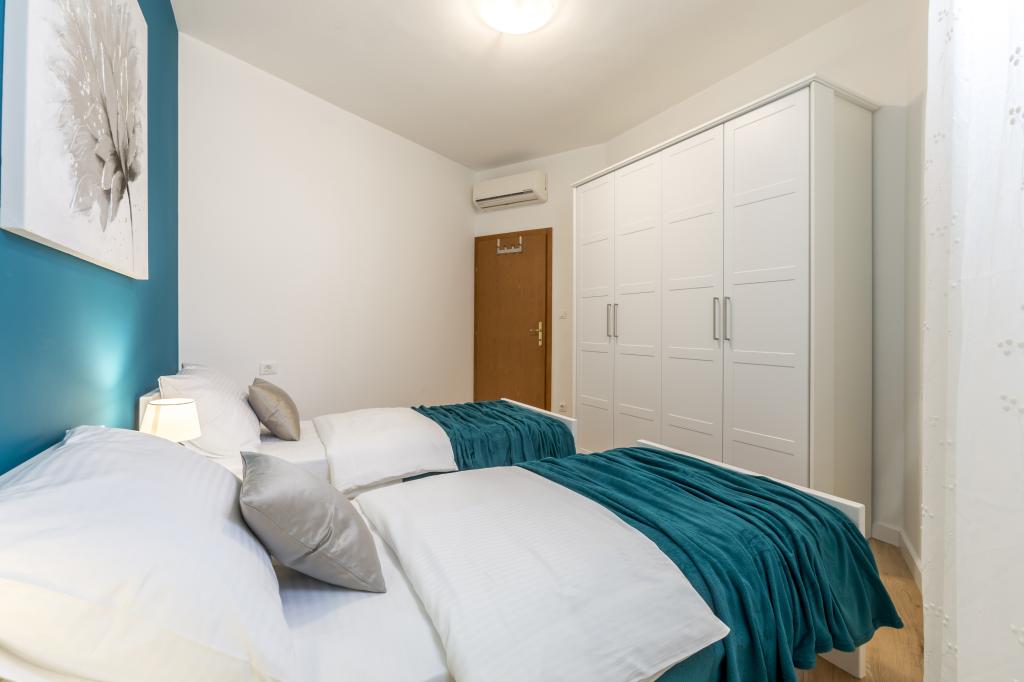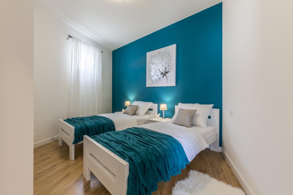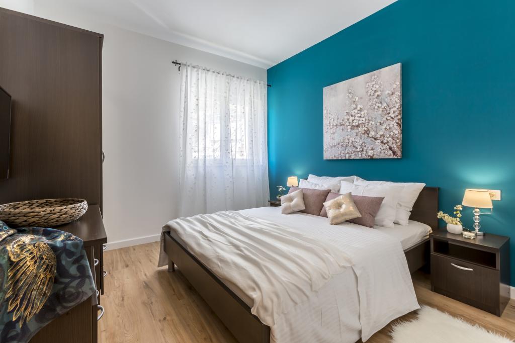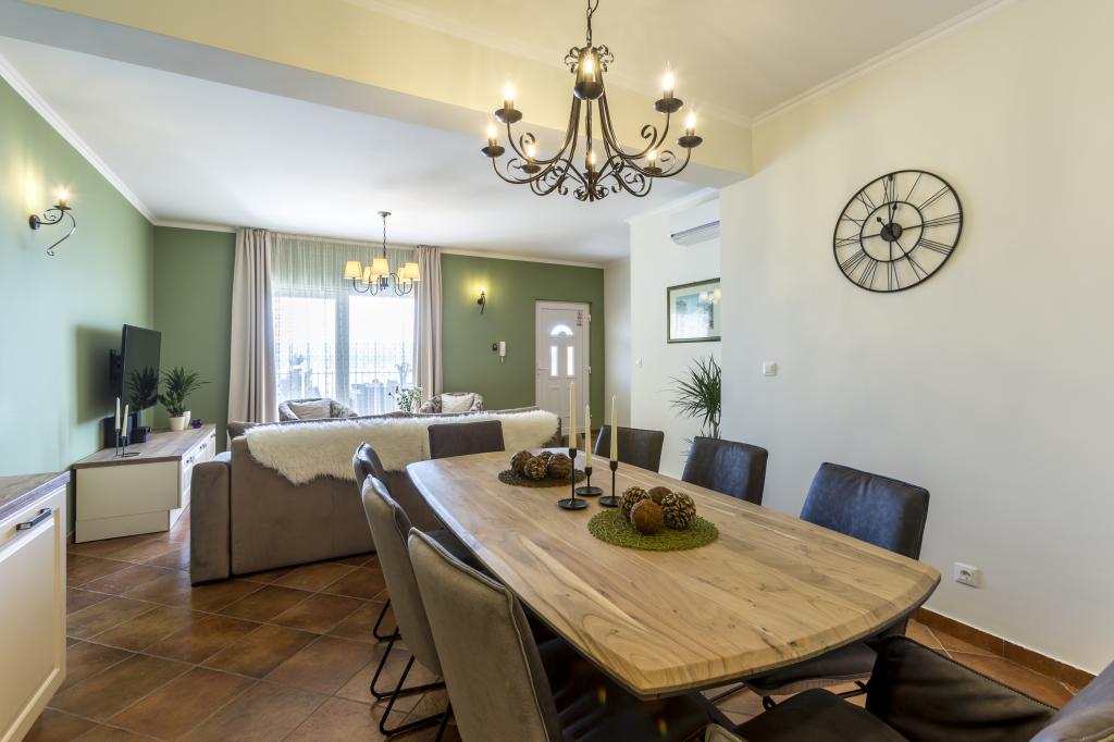Apartment VICTORY is located inside a detached villa near the quiet village of Mimice with a beautiful sea view in front and beautiful mountain nature behind the villa. An ideal space and location for family travelers who want to escape the crowded and noisy tourist areas. Local beaches are only a 10-minute walk away, including restaurants, beach bars and a local market. The apartment is luxuriously furnished with brand new furniture and all necessary equipment. The apartment size is 120m², accommodates a maximum of 8 guests and consists of: *Three (3) bedrooms equipped with air conditioning and new furniture. *Two (2) bathrooms with toilet and washing machine. *Large dining room (for 8 people) with a brand new kitchen equipped with all necessary dishes. *Large living room with a large sofa and two armchairs. *Large balcony (20 m²) with a beautiful sea view with a dining table for 8 people. The apartment is equipped with a large satellite 55” smart LED TV and audio system, with air conditioning.