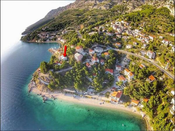 Mimica, this intimate and charming village. The apartment is located close to the sea, shingle beach very clean with showers, near several taverns, restaurant, mini-market and greengrocer (located closest to the town of Omis is a gift - 6 km). Apartment / 1 / is very large - it consists of a living room, a bedroom, a room with three beds, including bunk and a small room with a single bed, modern and spacious, fully equipped / dishwasher and washing machine / kitchen with all necessary accessories, apartment is well maintained and clean, with a huge terrace overlooking the sea and the village, in addition there are umbrellas, mattresses, fins, etc. to the beach. For visitors parking with garage and individual barbecue. Owner very nice and pleasant - greetings  RECOMMENDED Jola, Maciek and son Alexander