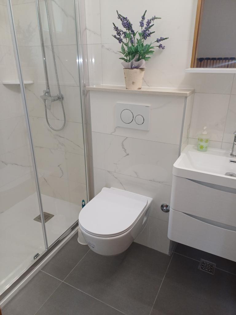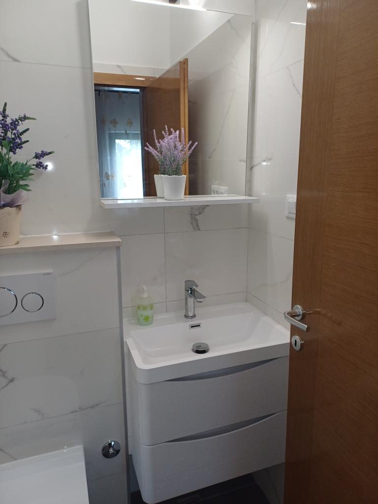 There is a modern, spacious apartment in a family house near the sea in Mimic. The apartment (6+1) consists of three bedrooms, two bathrooms, a kitchen, a living room, a dining room and a balcony with a beautiful view.