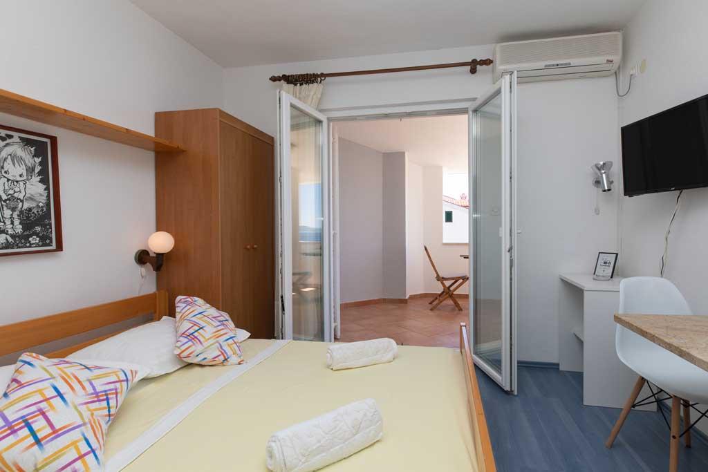 Apartments Ban are located in a small tourist place Medici known for its beautiful beaches. There are 3 apartments in the house. We have two studio apartments for two people. Each studio apartment has a large balcony with beautiful sea views, satellite TV, air conditioning, WiFi, kitchen and bathroom. In the attic there is an apartment for six people. Roof top apartment has a truly amazing view of the sea and islands. The apartment has two bedrooms, two bathrooms, two balconies and a large living room with kitchen. The four-star penthouse has large TV, satellite channels and WiFi internet. Each room is air conditioned. The kitchen is fully equipped with a large refrigerator, oven, all necessary utensils and a dishwasher. Guests also have a washing machine at their disposal. A large parking lot is located right next to the house. The beach is only 40 meters away. The beaches are numerous and beautiful. Two large beaches have a beach bar, the other beaches are smaller and more intimate.