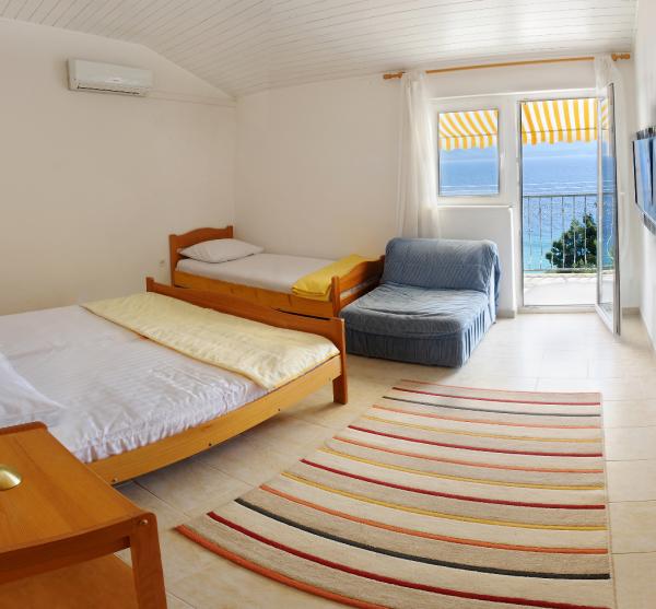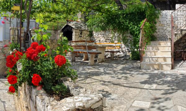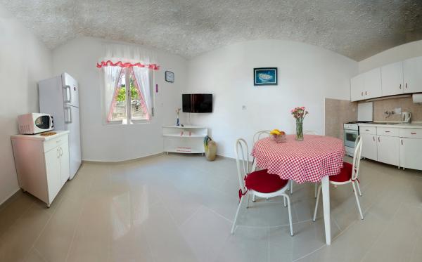 The apartments are located in a quiet bay, 30m from the beach. The beach is great, gravel, suitable for small children.
