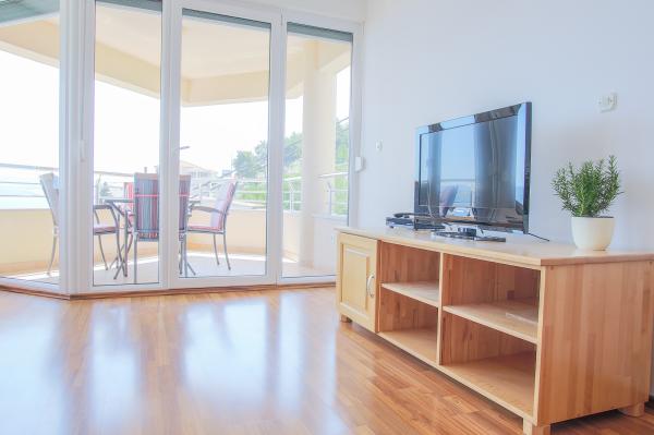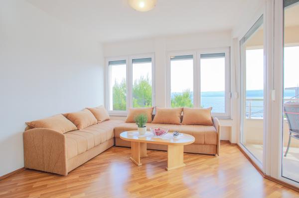 Larus-ft apartments are new, fully equipped and modern apartments located in a small, picturesque central location Mimica. They are located under the main road and are located 60 meters from the beach and the town center, which is ideal for family holidays. Also, apartments have parking space for all vehicles and is located at 40 meters from a supermarket, post office, ATMs, restaurants and pizzerias. Location of the apartment was excellent and because it is located 15 minutes drive from Omis and 30 minutes drive from Makarska, which are known for an active holiday and nightlife, and Split is located only 45 minutes drive away.