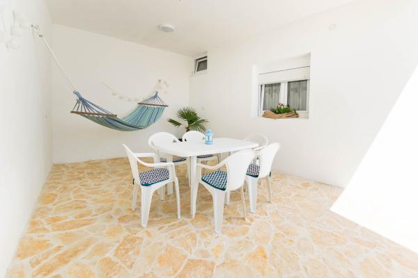 Apartments Mara is a wonderful place for a vacation in Croatia. We stayed in apartment A6 Beautiful view from the terrace, spacious rooms, effective air conditioning, very well equipped kitchen, clean and comfortable, fast wi-fi, sets of towels - in a word, everything you need. Everything as described and photos. The hostess Marina, very nice and hospitable, in the fridge waiting for us Croatian specialties wine, beer and cold Jamnica. Dogs are welcome !!! We were with a small dachshund, the area was fenced with a lockable gate. It's a bit further to the beach than 100m, but well ... The beach is beautiful with small pebbles and crystal clear water and showers, the other a little further with a bit of gravel, more wild. There are two bars on the beach serving alcohol for adults, ice cream and snacks. We are happy to recommend "Apartmani Mara", if you want a fantastic holiday and you are looking for a quiet place to relax away from the hustle and bustle, this is the place for you.