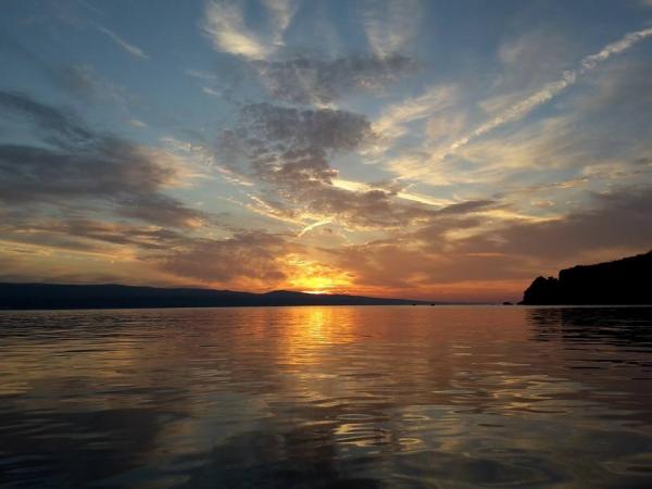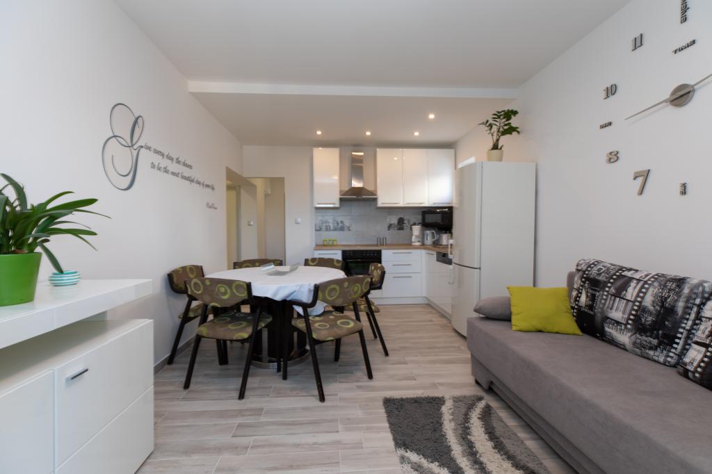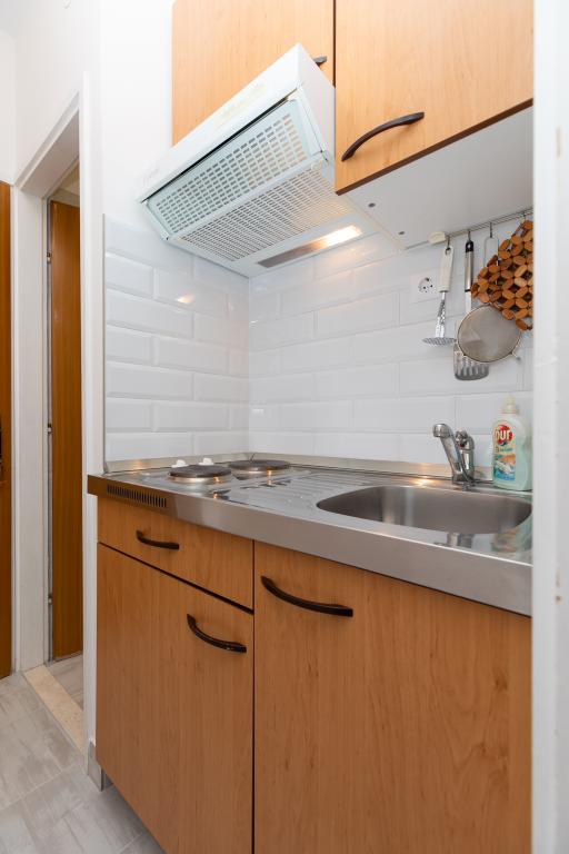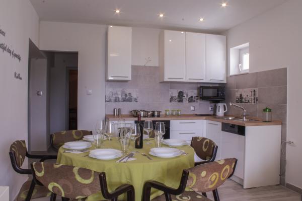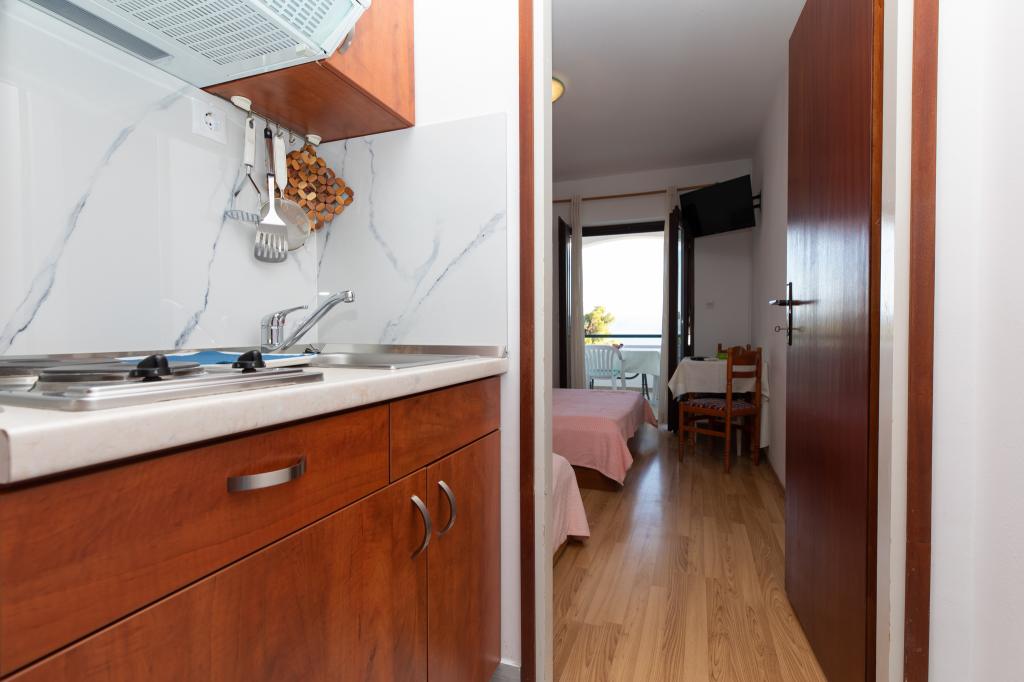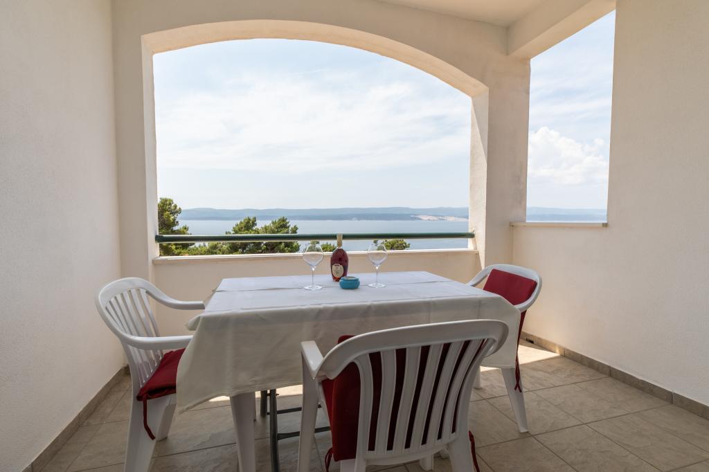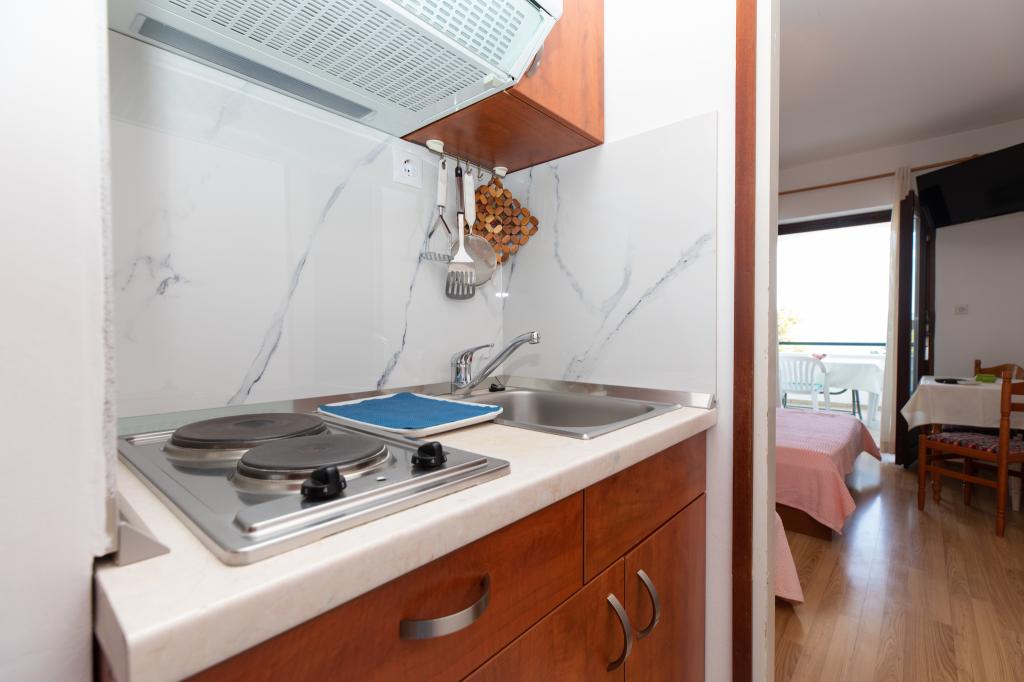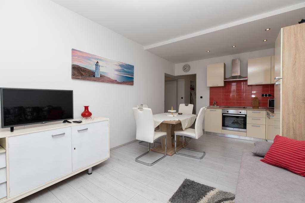 Residential tax is included in price.Hello, A great place for a holiday. The apartment met my expectations, the studio 2 + 1 maybe a little small, but very clean, a wonderful balcony that did not heat up, and sat down to sit when it was raining or blowing. Location great, the view of the sea is breathtaking, from the balcony you can see the beaches on which we rested daily. Access to the beaches is the exit from the yard to the stairs leading to the place. Spacious parking which is a big advantage. Owners very nice together with their beautiful dog Bella. I recommend it to everyone