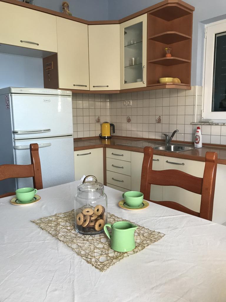 We were very satisfied. The apartment is big, beautiful and clean. Kitchen equipment is sufficient, but not a kettle and a microwave. Otherwise, we lack nothing. The beach is pebble and can be reached by stairs. The owners were very nice. Miro thank you for a pleasant holiday.