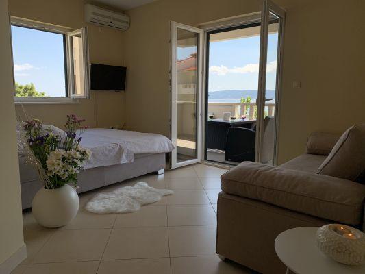 Apartements are in beautiful, quite location with nearby green trees and awesome sea views from balconies. There is a private, beautiful beach about 2 minutes of walk from the house or you can visit main Medici beach with two bars. Apartements are in a small distance from food shop (7 mins of walk) and also from some restaurants (in mimice aprox.10 mins of walk). If you are there with car, you can also visit some nearby places that are often visited by tourists (Omiš, Brela, Split, Makarska etc.) Apartement was clean with a realy nice interior. There is a common grill for all guests (next to the apartements house). Owners are kind and permanently smiling people and they are always willing to help if you need something. I would totally recommend these apartements to people who do not like a crowded beaches and evening intense noise because there is realy peace and quite. We truly enjoyed our vacation there and we all hope that we will come back one day.