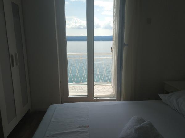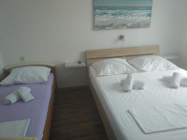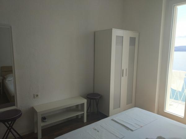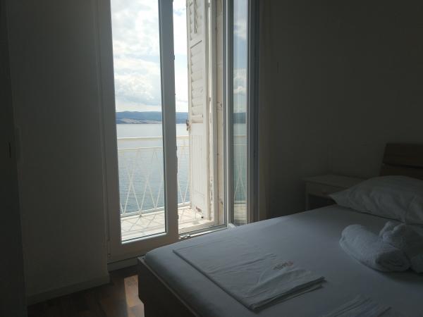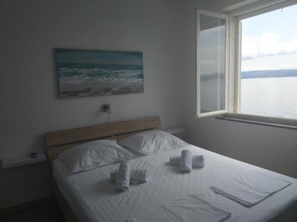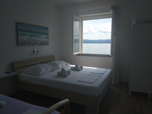 Triple air-conditioned rooms located on the 1st floor of a stone house in Mimice, right next to the sea and pebble beach. Two rooms with balcony and view, third bedroom with sea view. Each room has a separate bathroom. Free WI-FI. Free use of shared kitchen and terrace. The kitchen is equipped with 3 refrigerators, electric cooking plates, kettle, microwave, dining table and chairs. The enclosed terrace is equipped with loungers, table and chairs for rest.