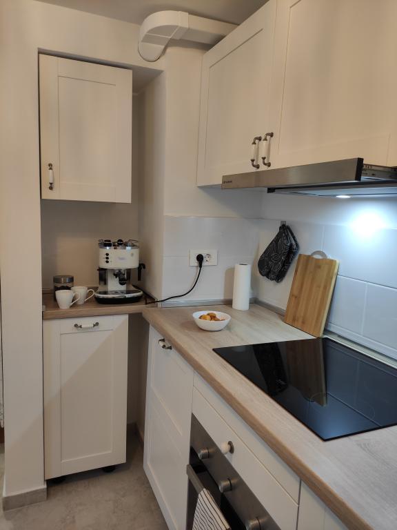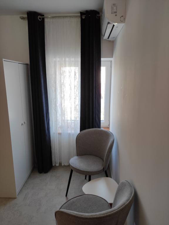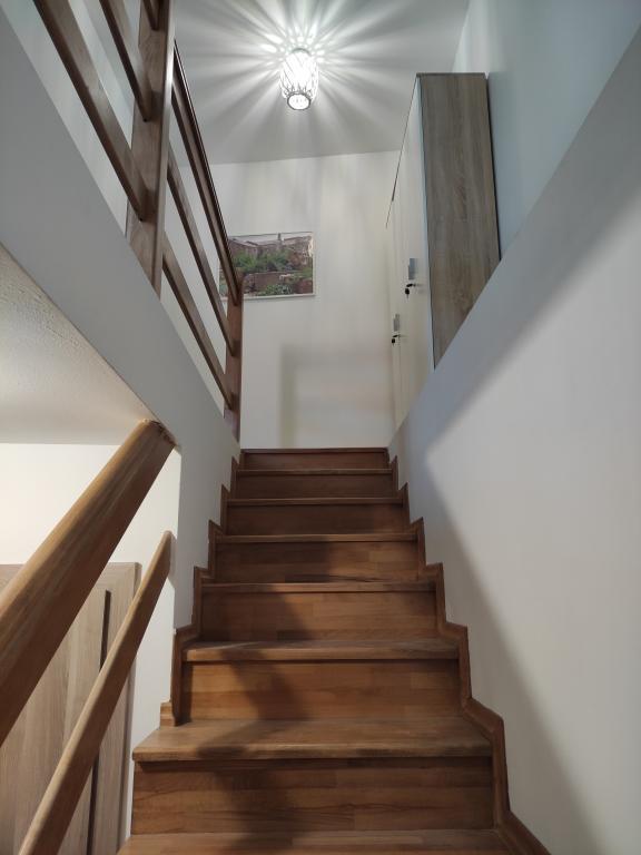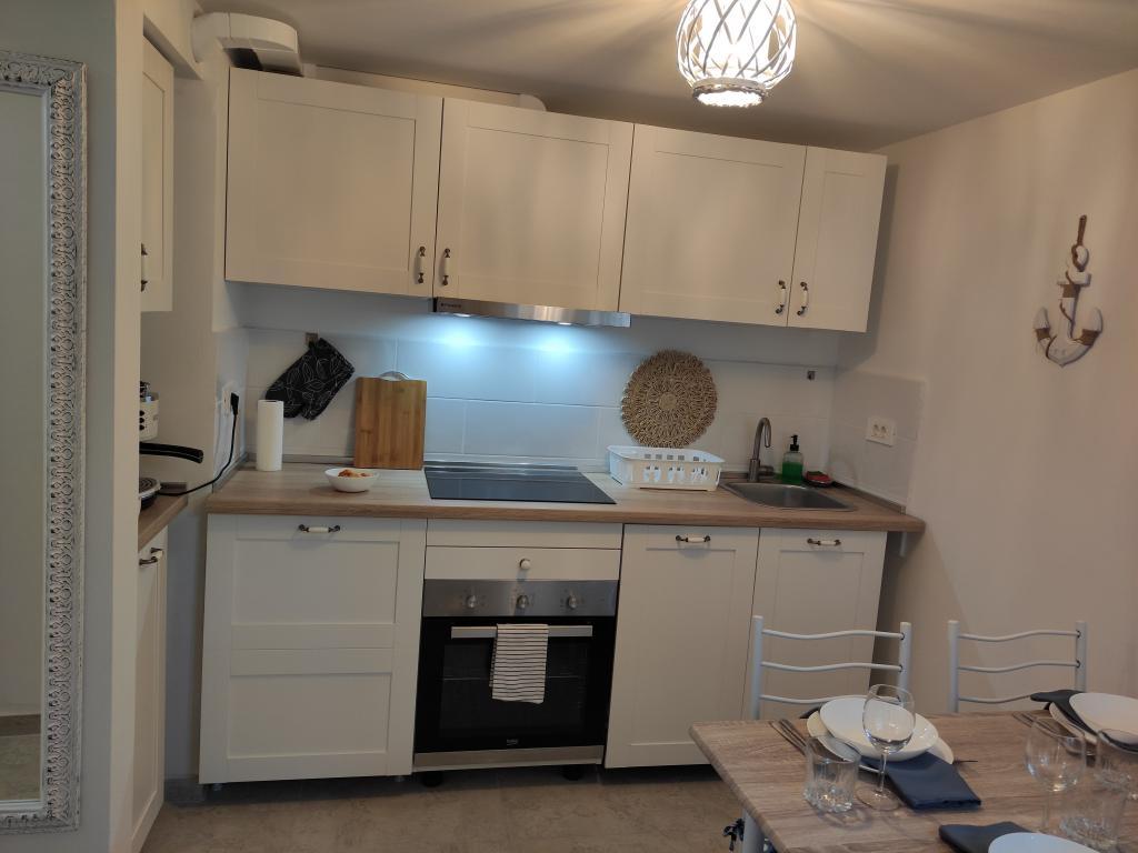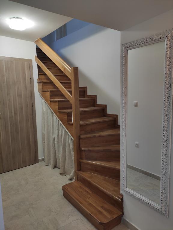 The apartment has two bedrooms, a bathroom, a kitchen and a large balcony. Capacity is 4 people. The rooms are air-conditioned, have internet, and android TV, and a corner with armchairs for rest. One is located on the ground floor, the other on the first floor of the apartment. The kitchen is modernly equipped and includes a fridge, freezer, oven, stove, espresso machine, complete cooking utensils and a dishwasher. The bathroom is equipped with the necessary appliances, including a washing machine. The balcony is covered and equipped with garden furniture. A barbecue is available in the yard. We are waiting for you